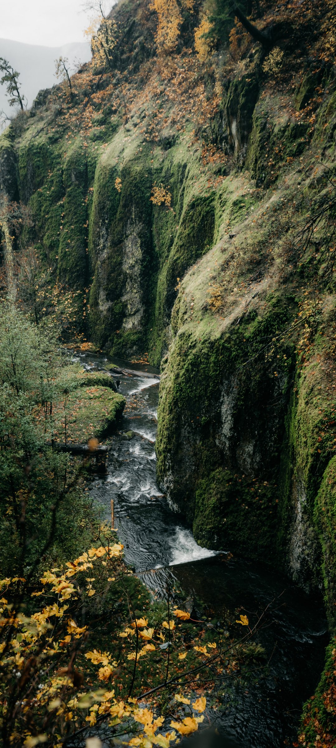 Wallpaper: rocks, greens, cliff - 1080x2400
