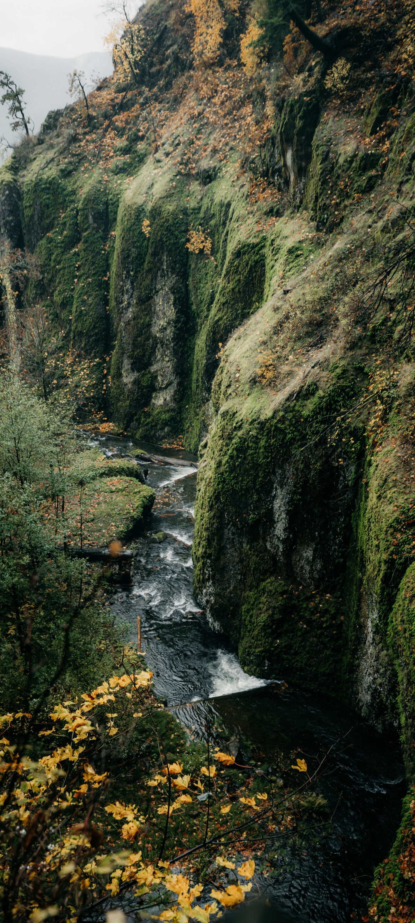 Wallpaper: rocks, greens, cliff - 1440x3200