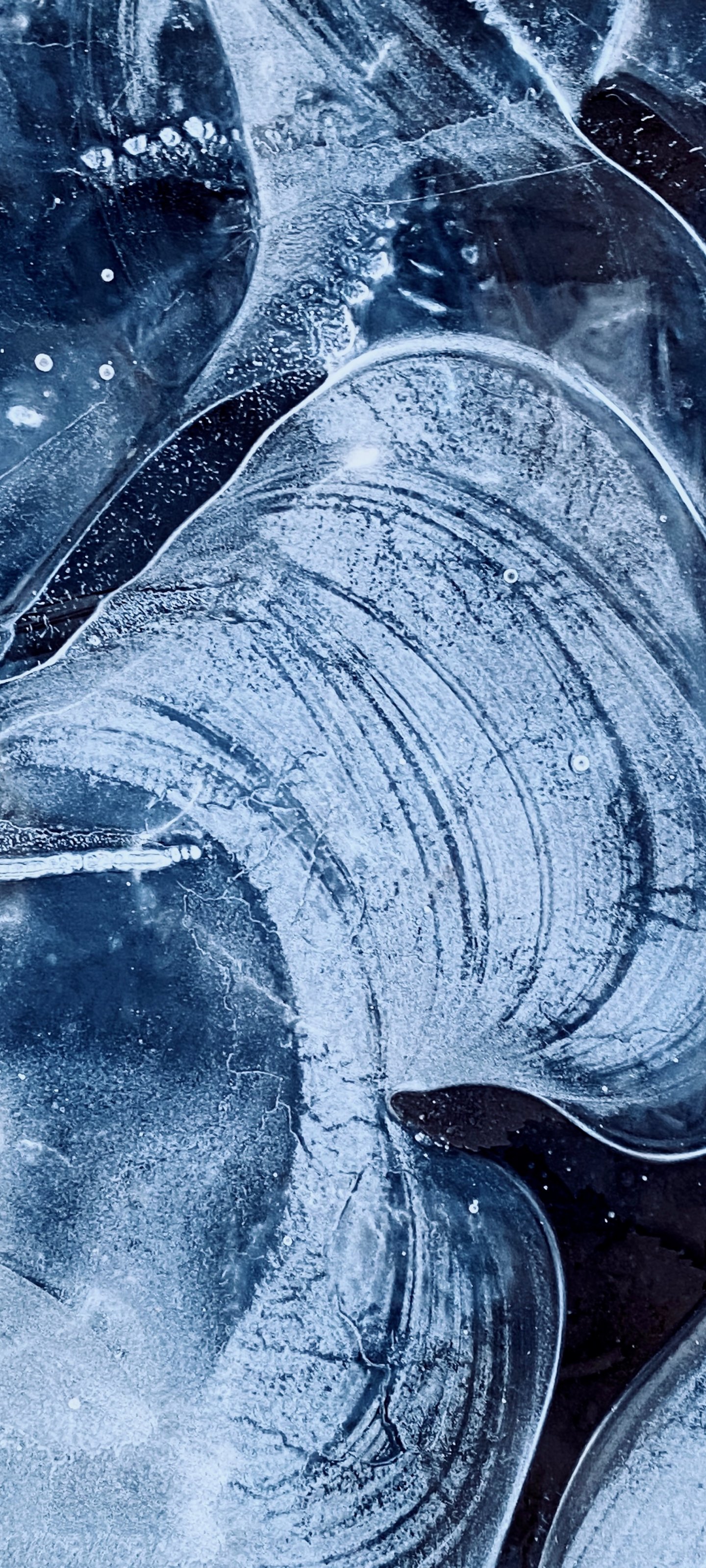 Wallpaper: ice, frozen water, drawing on ice - 1440x3200