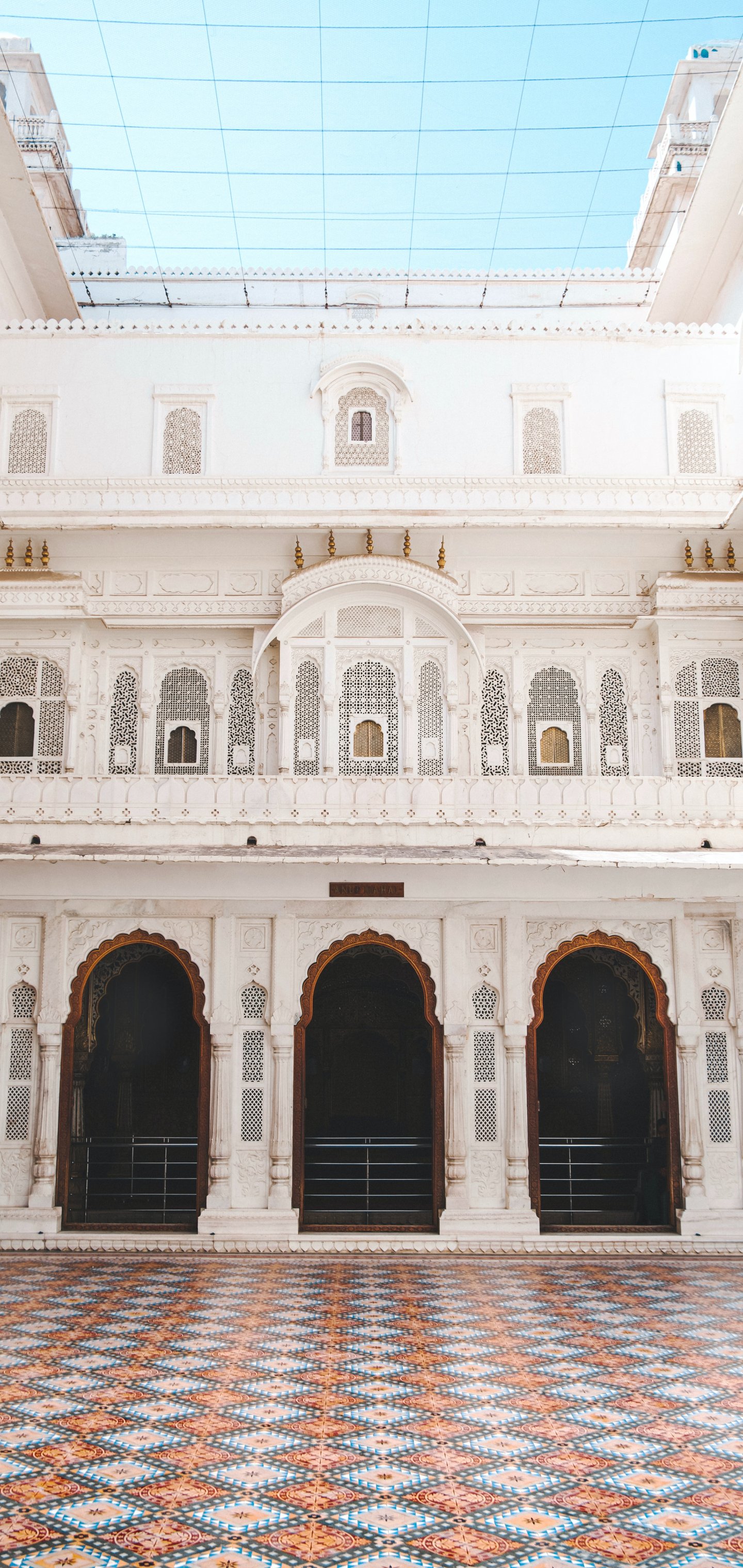 Wallpaper: white building, colorful tiles - 1440x3040