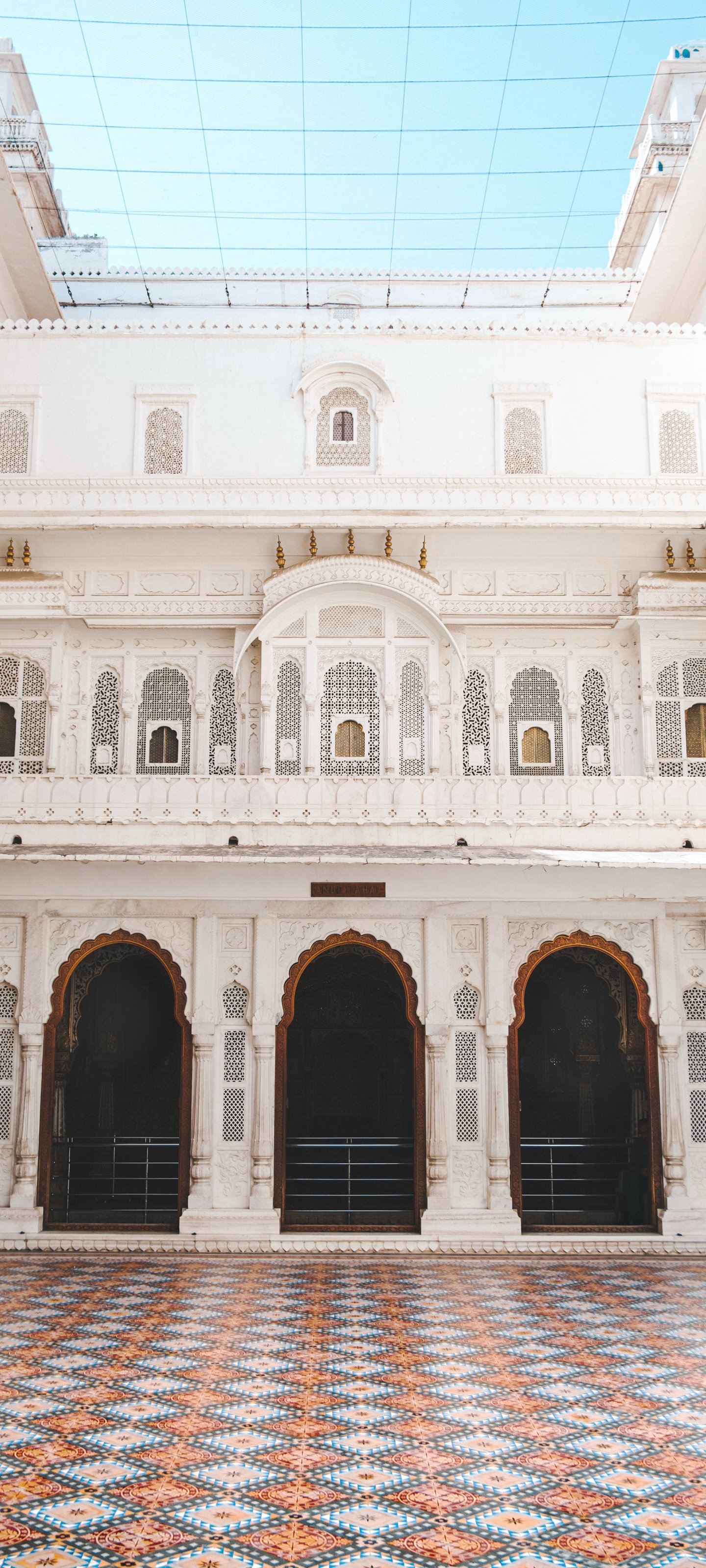 Wallpaper: white building, colorful tiles - 1440x3200