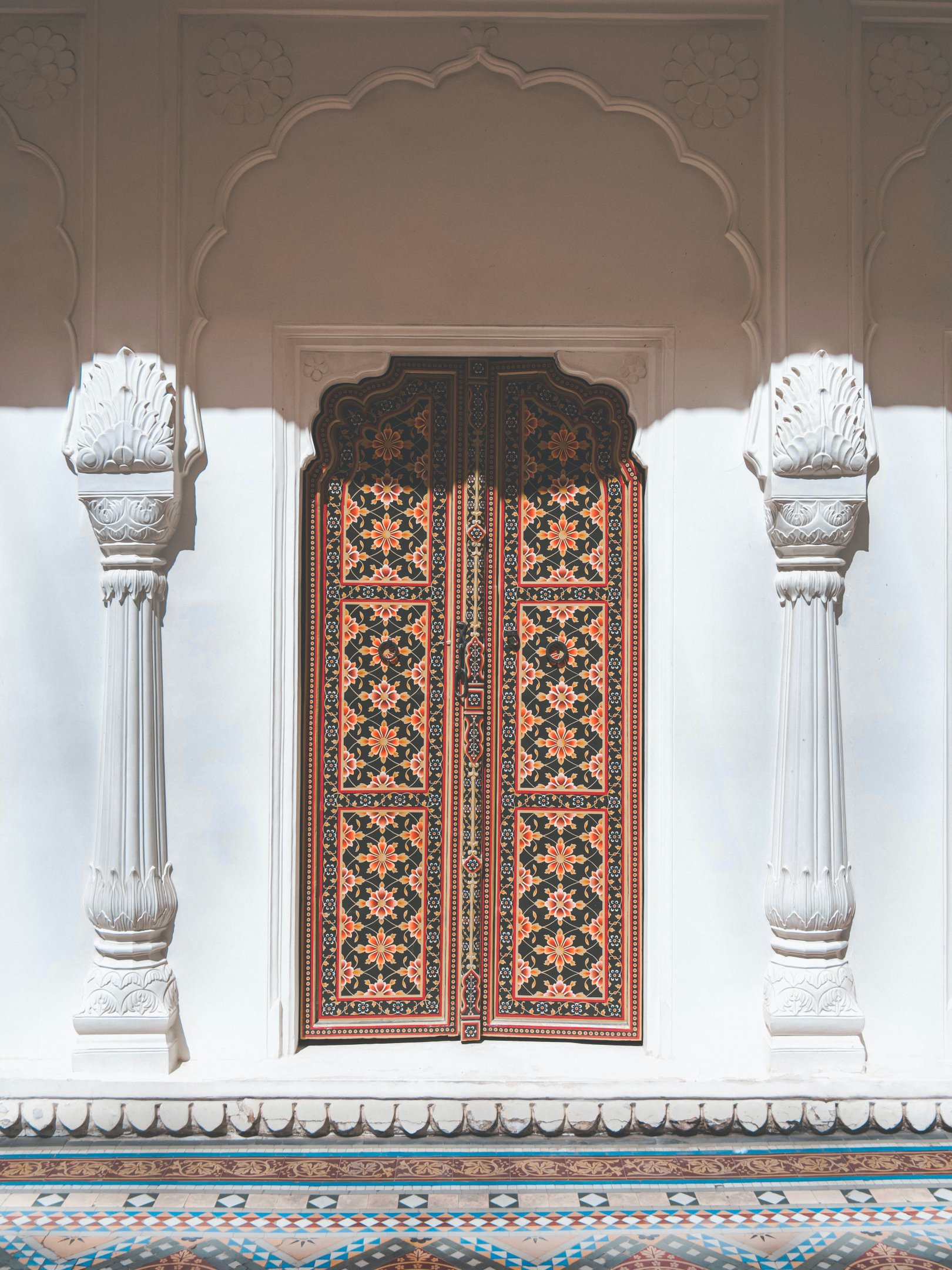 Wallpaper: carved door, columns, white - 1620x2160