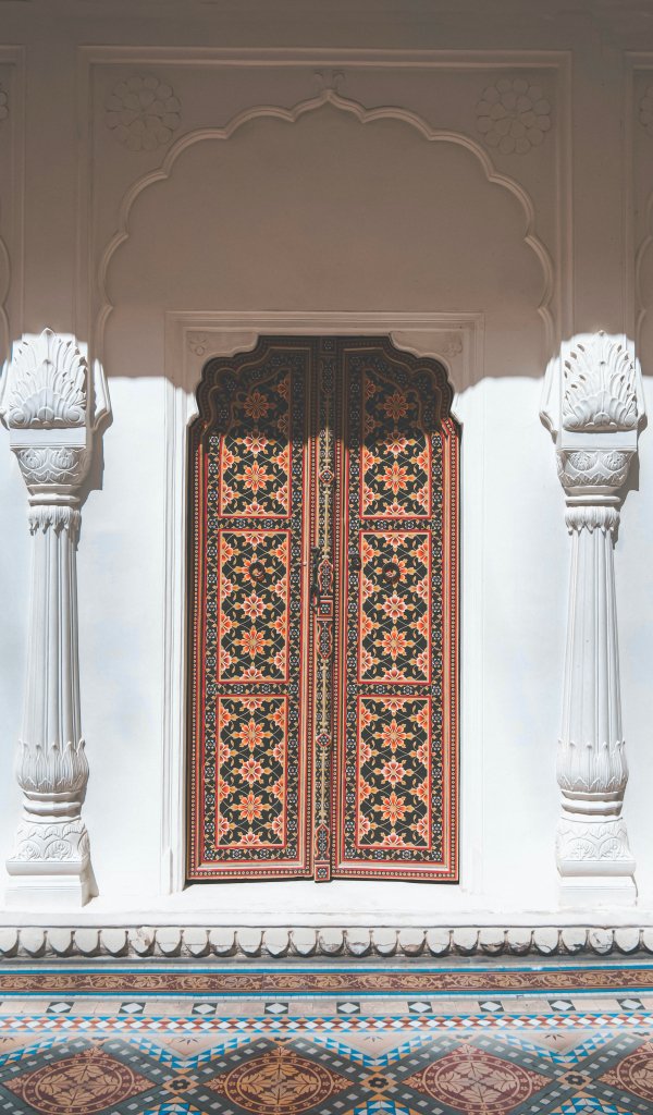Wallpaper: carved door, columns, white - 600x1024