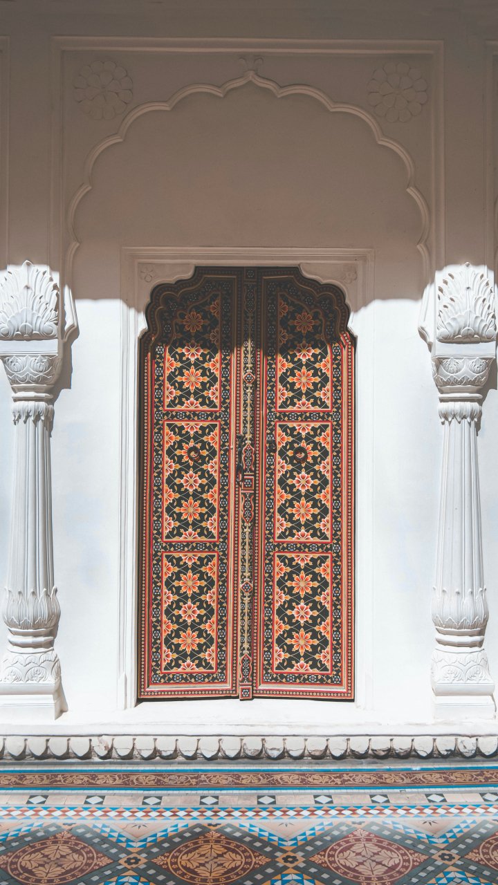 Wallpaper: carved door, columns, white - 720x1280