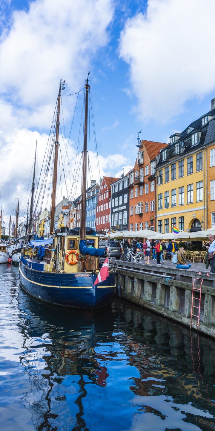 Wallpaper: boat, cutter, city embankment - 720x1440