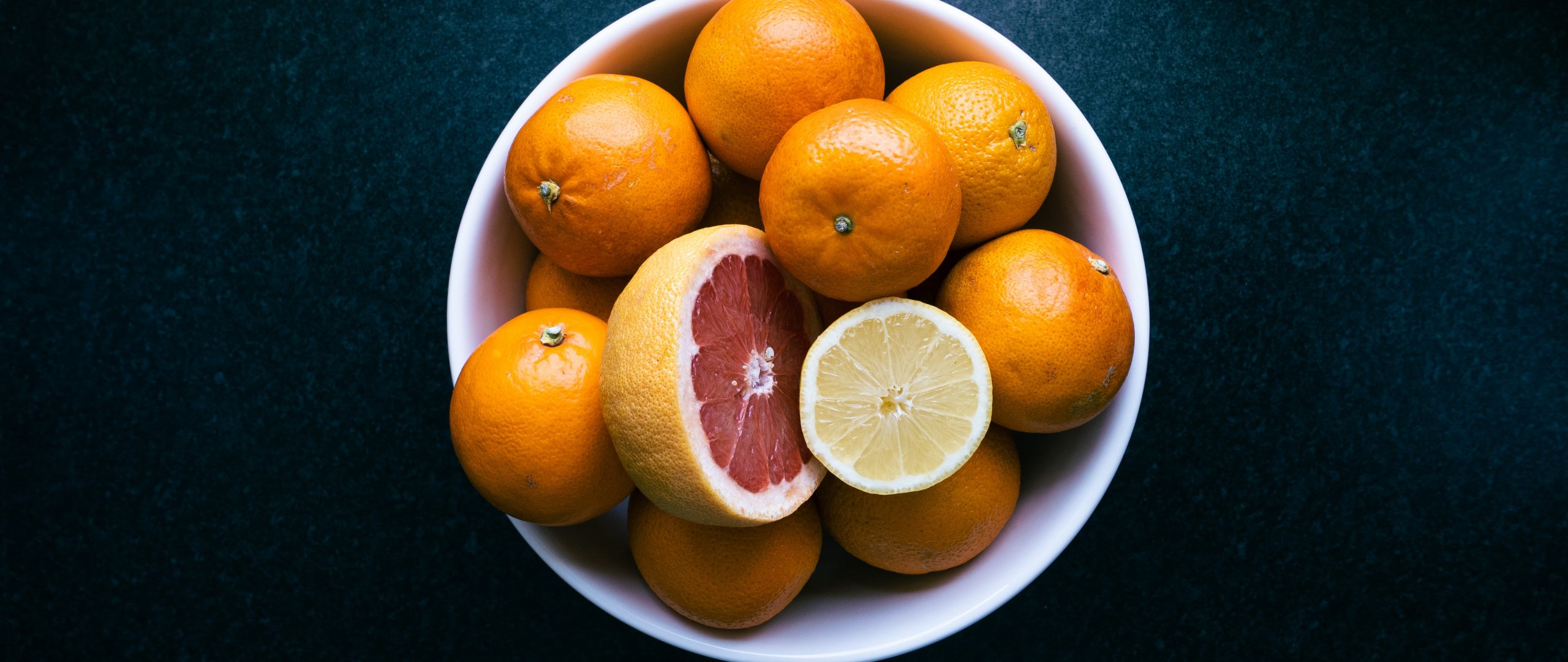 Wallpaper: fruit plate, tangerines - 2560x1080