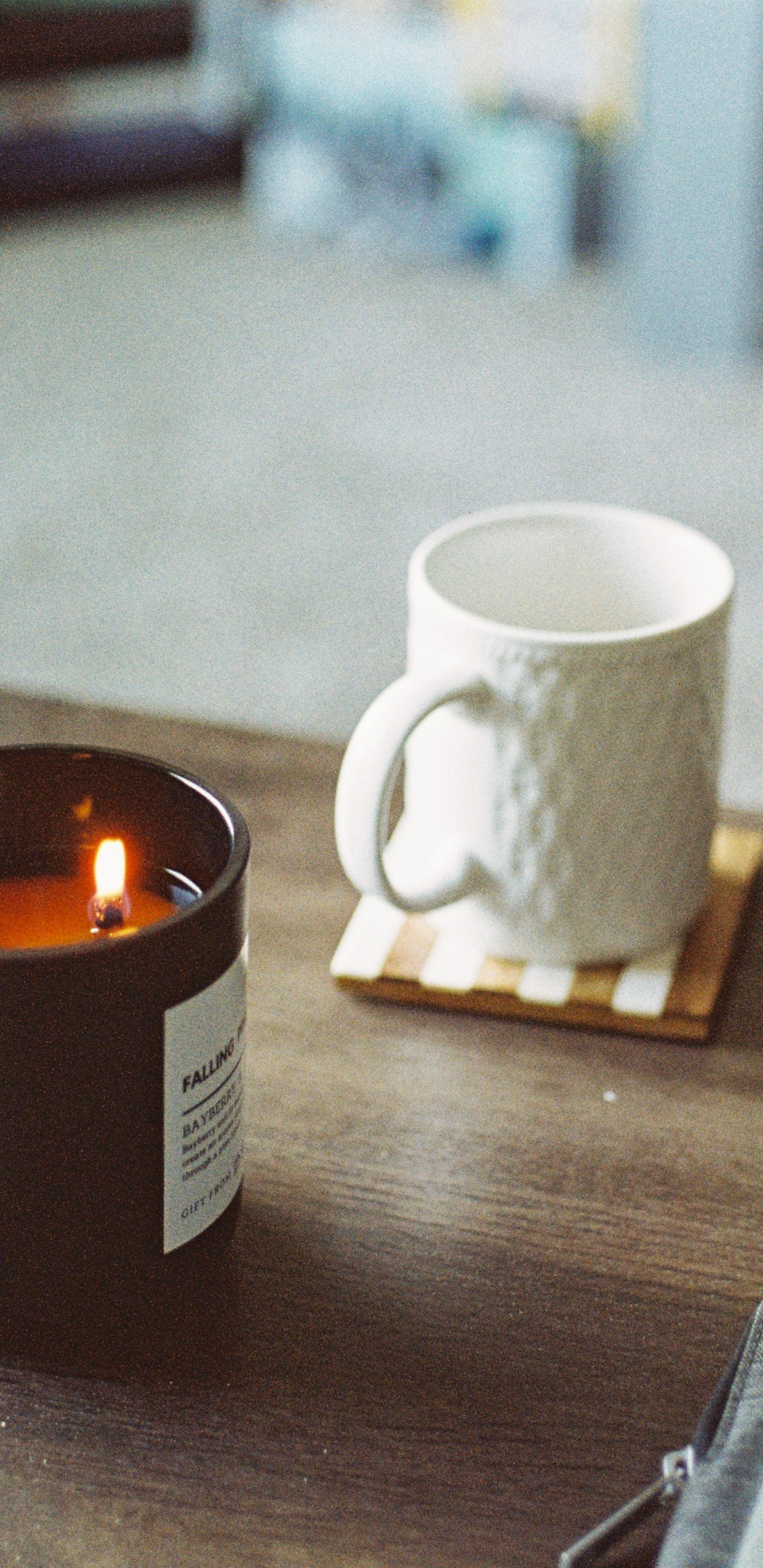 Wallpaper: computer, candle, mug - 1440x2960