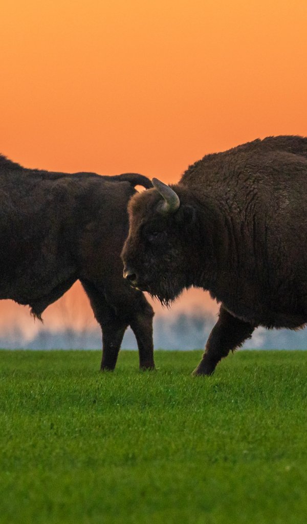 Wallpaper: Krynki, Poland, two bison - 600x1024