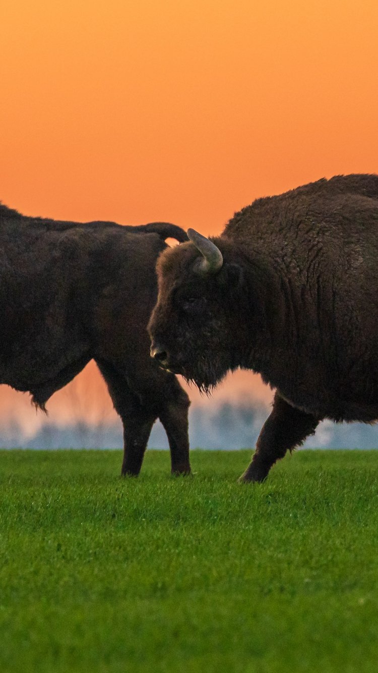Wallpaper: Krynki, Poland, two bison - 750x1334