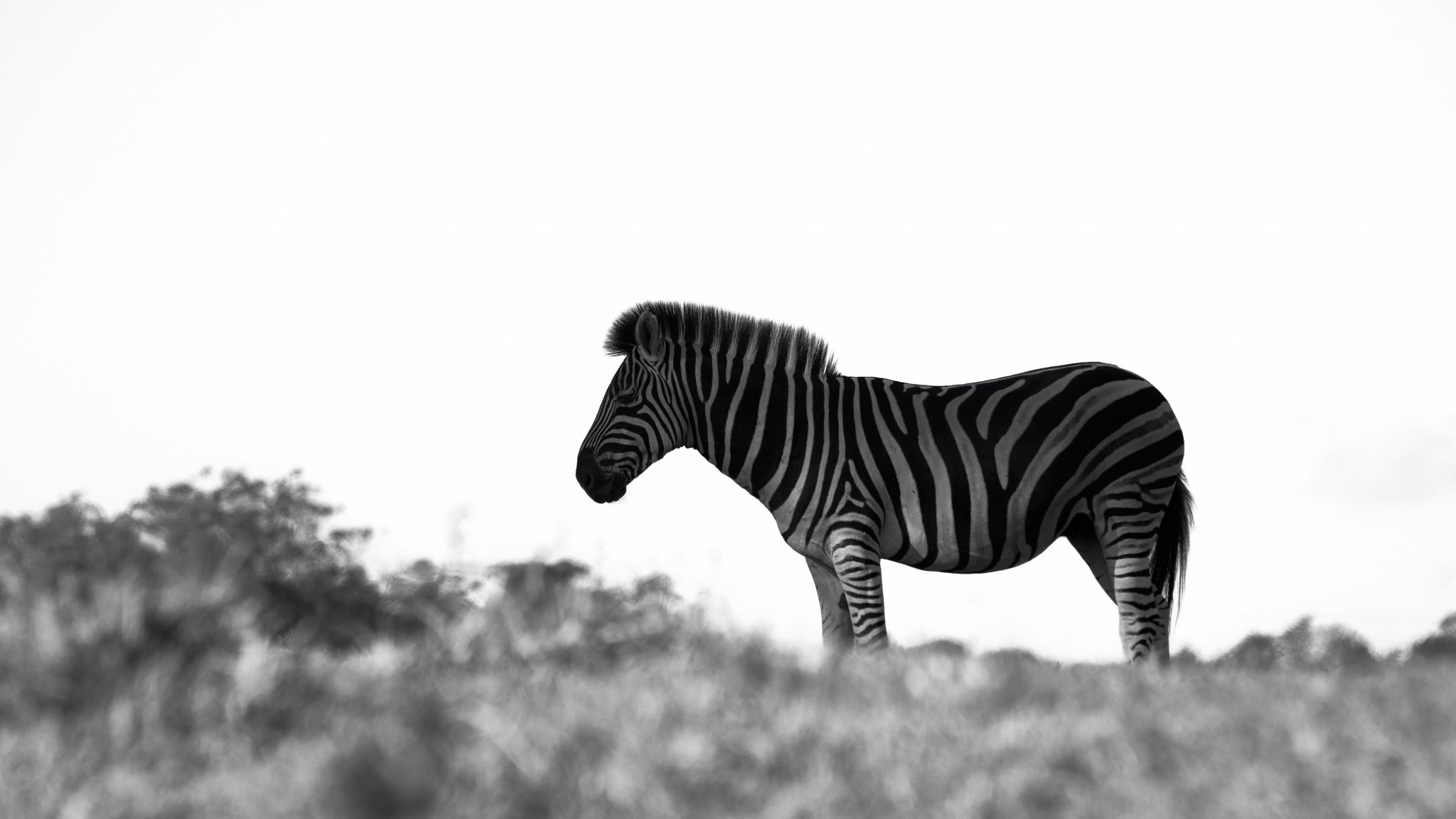 Wallpaper: Africa, zebra, black and white photo - 2048x1152