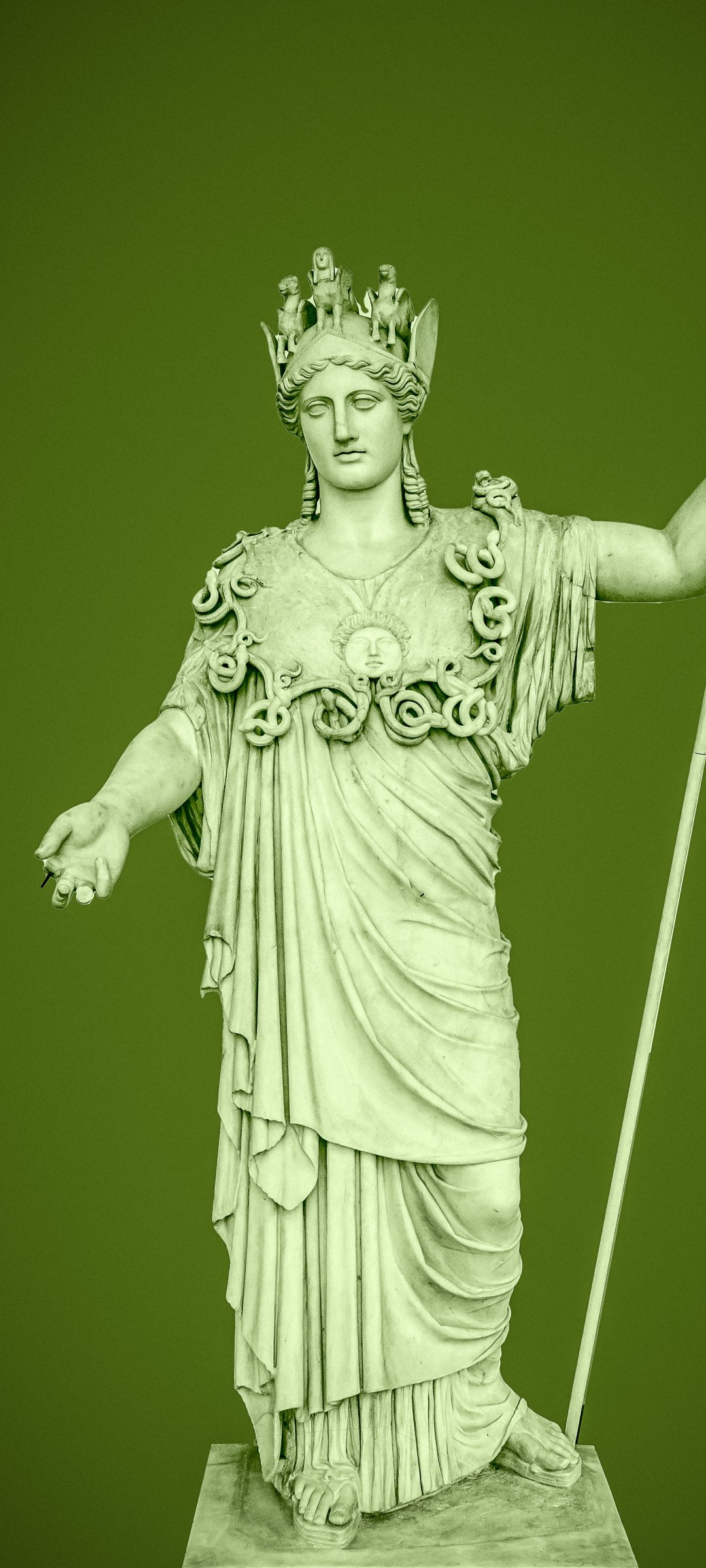 Wallpaper: statue, green background - 1080x2400