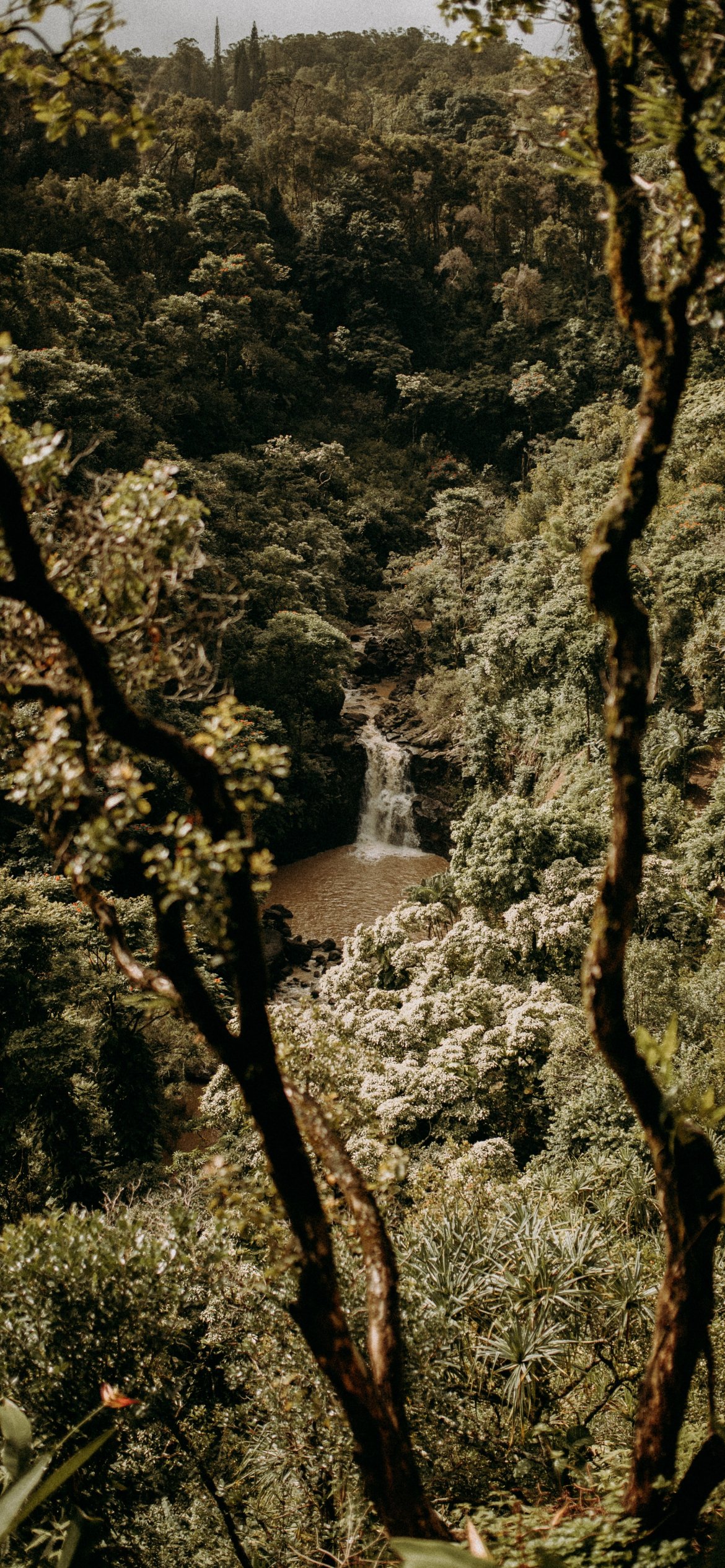 Wallpaper: waterfall, forest - 1170x2532