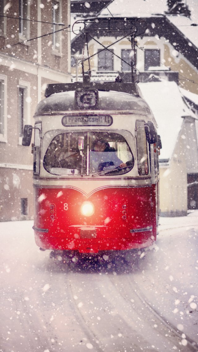 Wallpaper: tram, snow - 640x1136