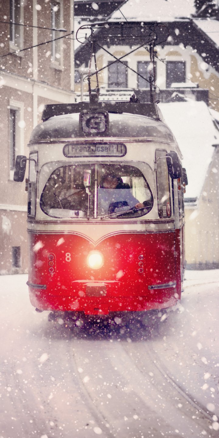 Wallpaper: tram, snow - 720x1440