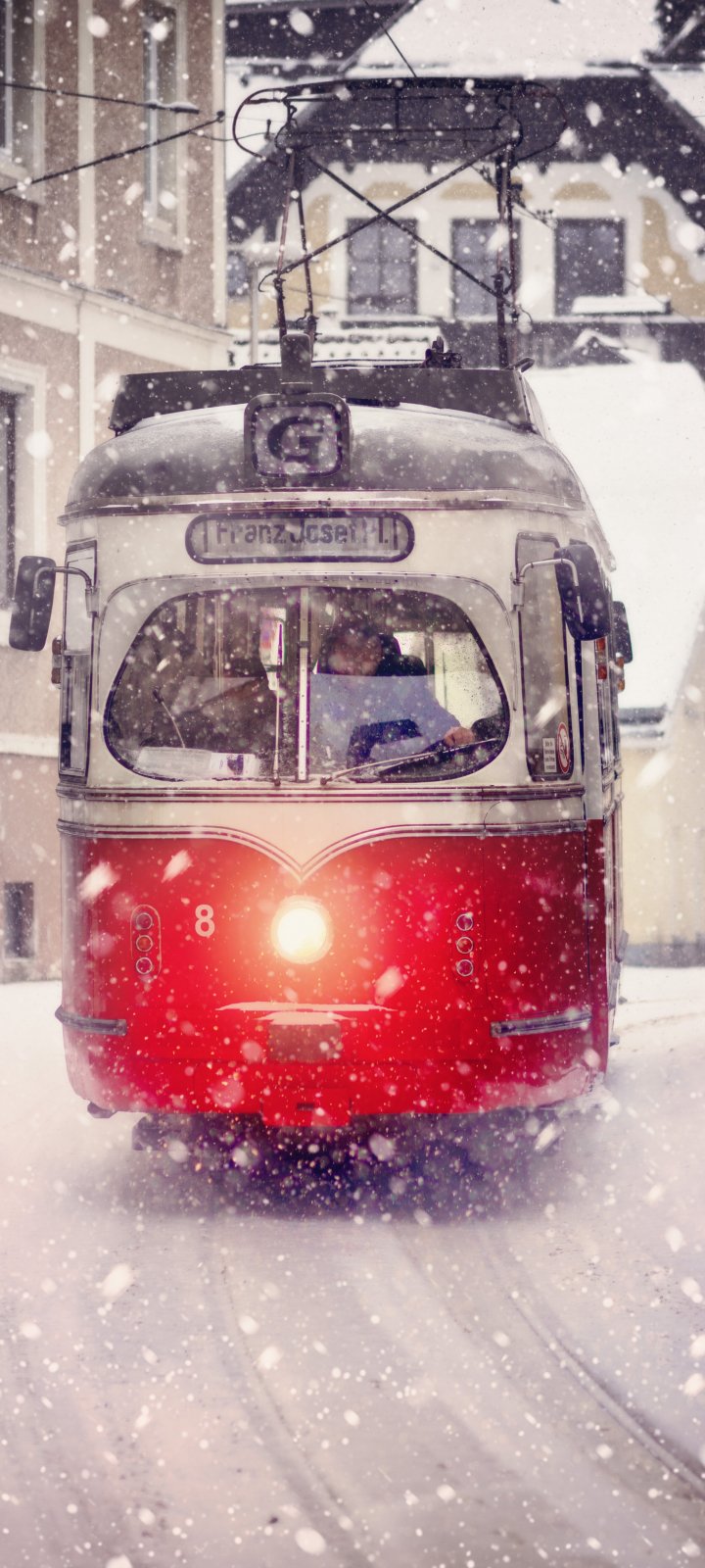 Wallpaper: tram, snow - 720x1600