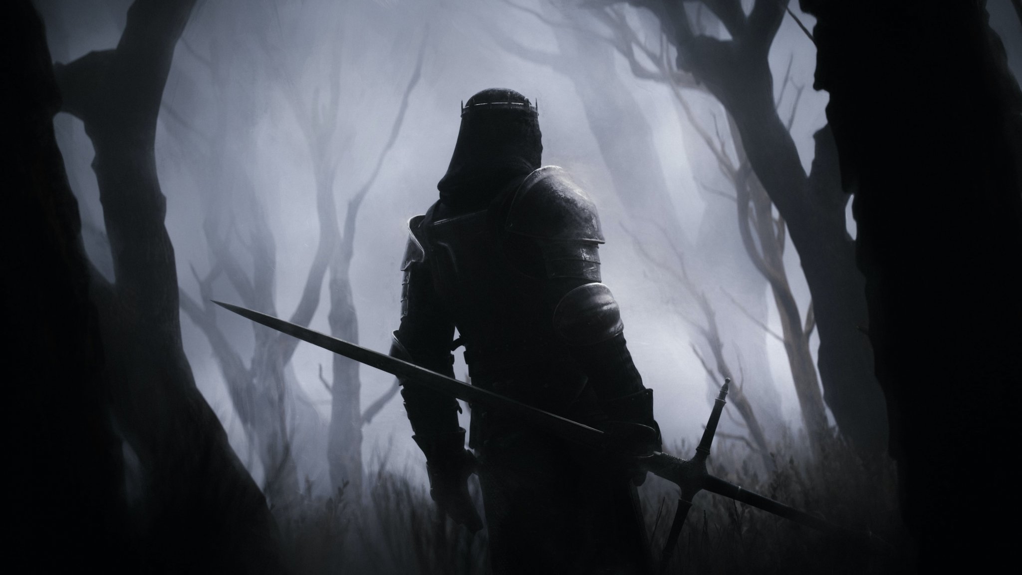 Wallpaper: warrior, forest, sword - 2048x1152