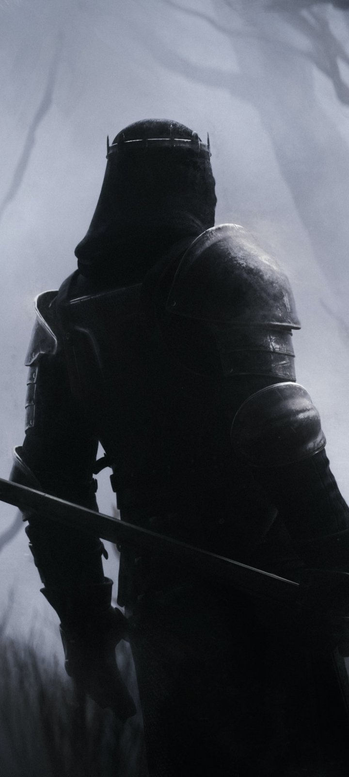 Wallpaper: warrior, forest, sword - 720x1600