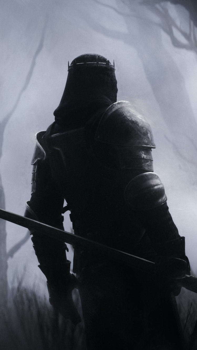 Wallpaper: warrior, forest, sword - 750x1334