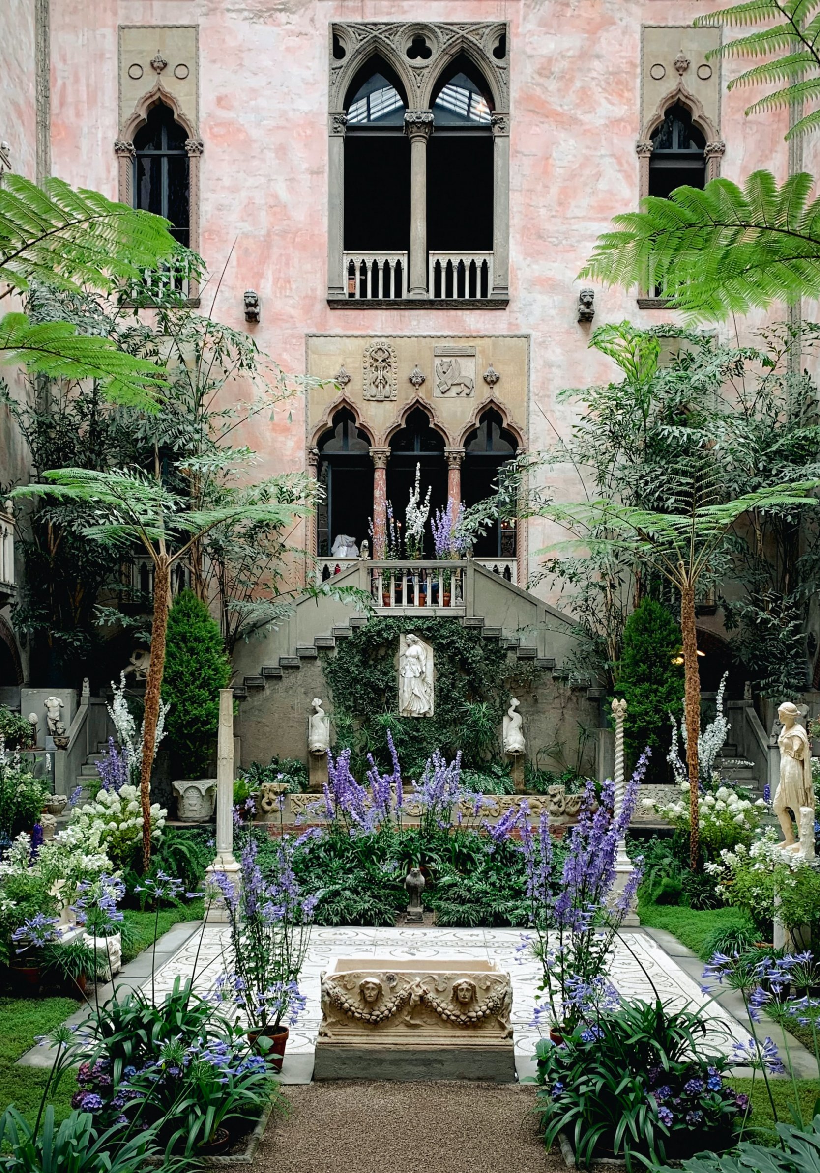 Wallpaper: beautiful garden, plants, statues - 1668x2388