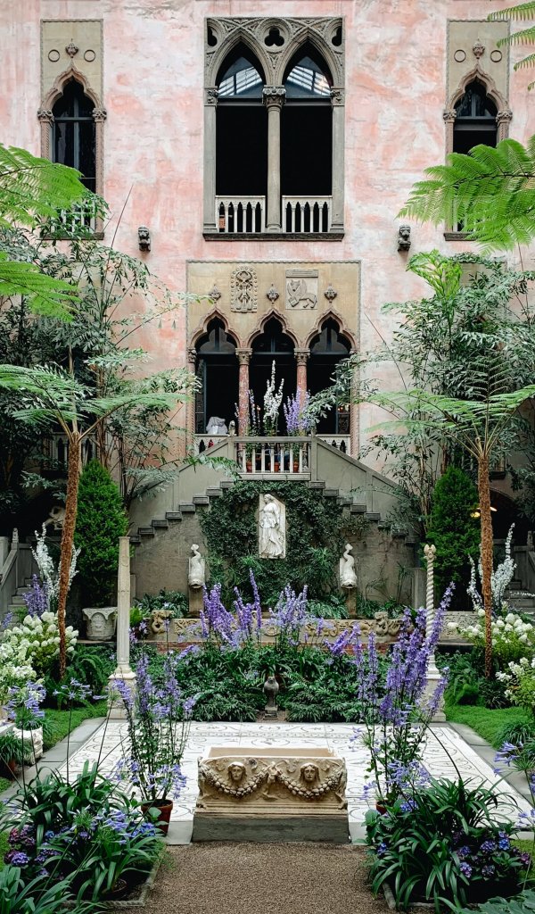 Wallpaper: beautiful garden, plants, statues - 600x1024