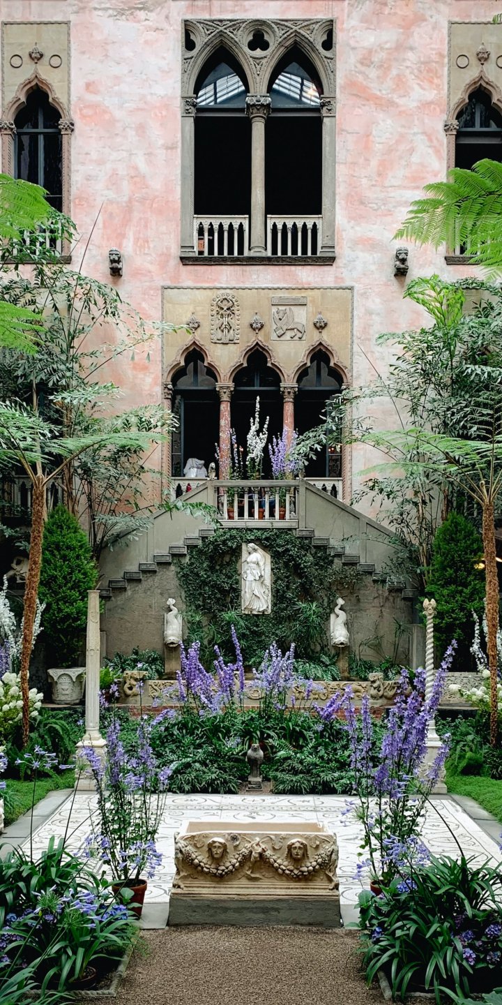 Wallpaper: beautiful garden, plants, statues - 720x1440