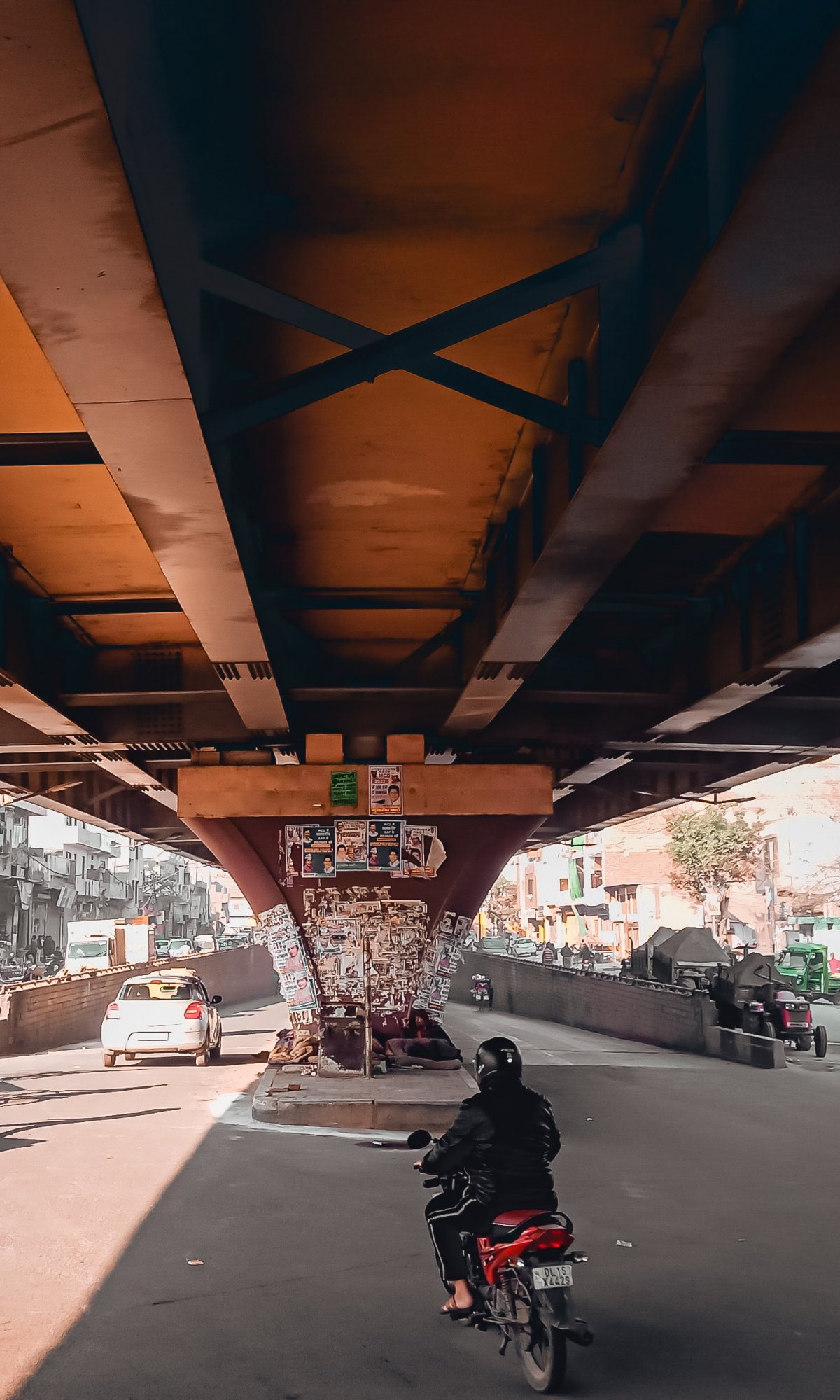 Wallpaper: under the bridge, city, mopeds - 1200x2000
