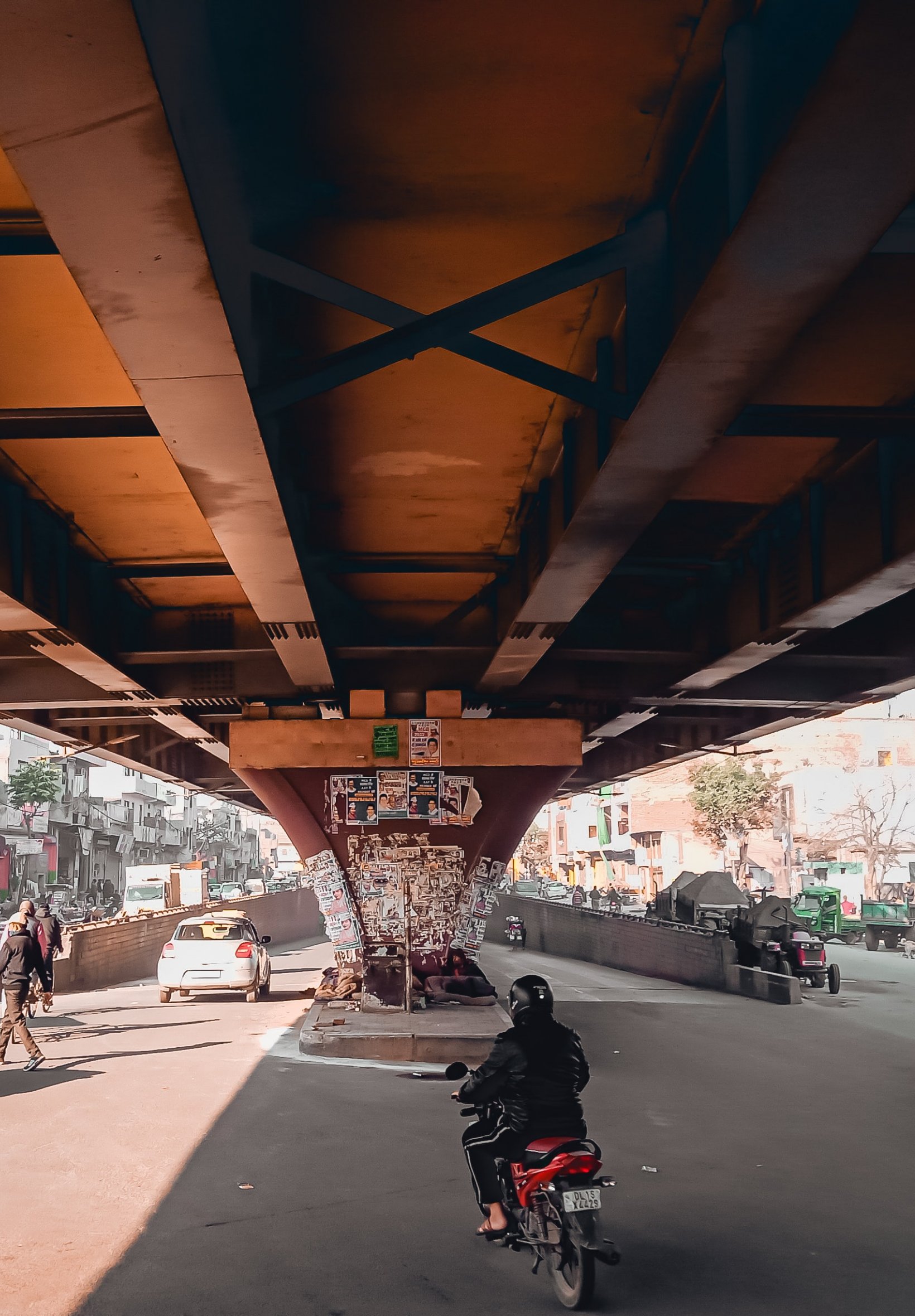 Wallpaper: under the bridge, city, mopeds - 1640x2360