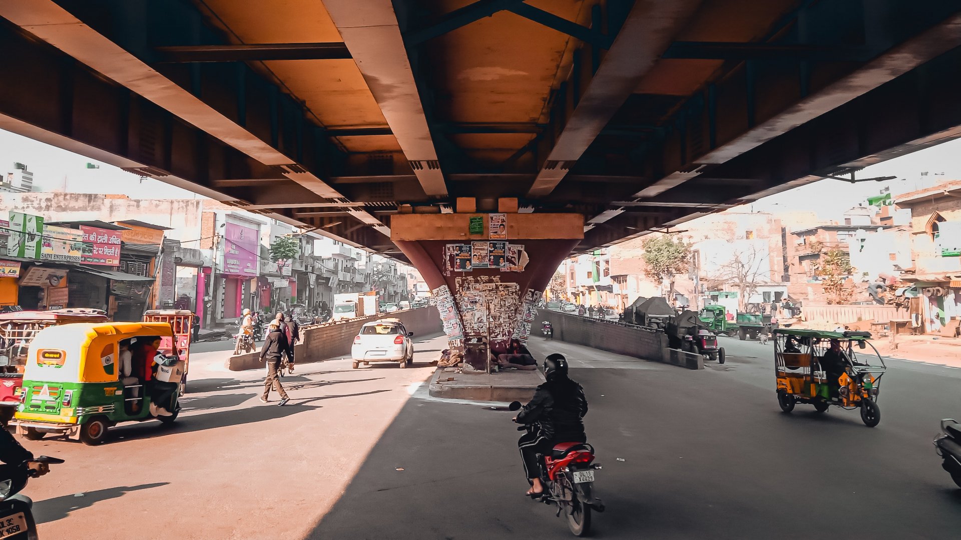 Wallpaper: under the bridge, city, mopeds - 1920x1080