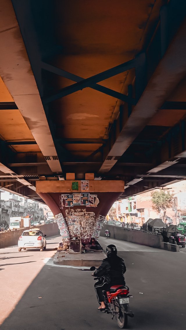 Wallpaper: under the bridge, city, mopeds - 640x1136