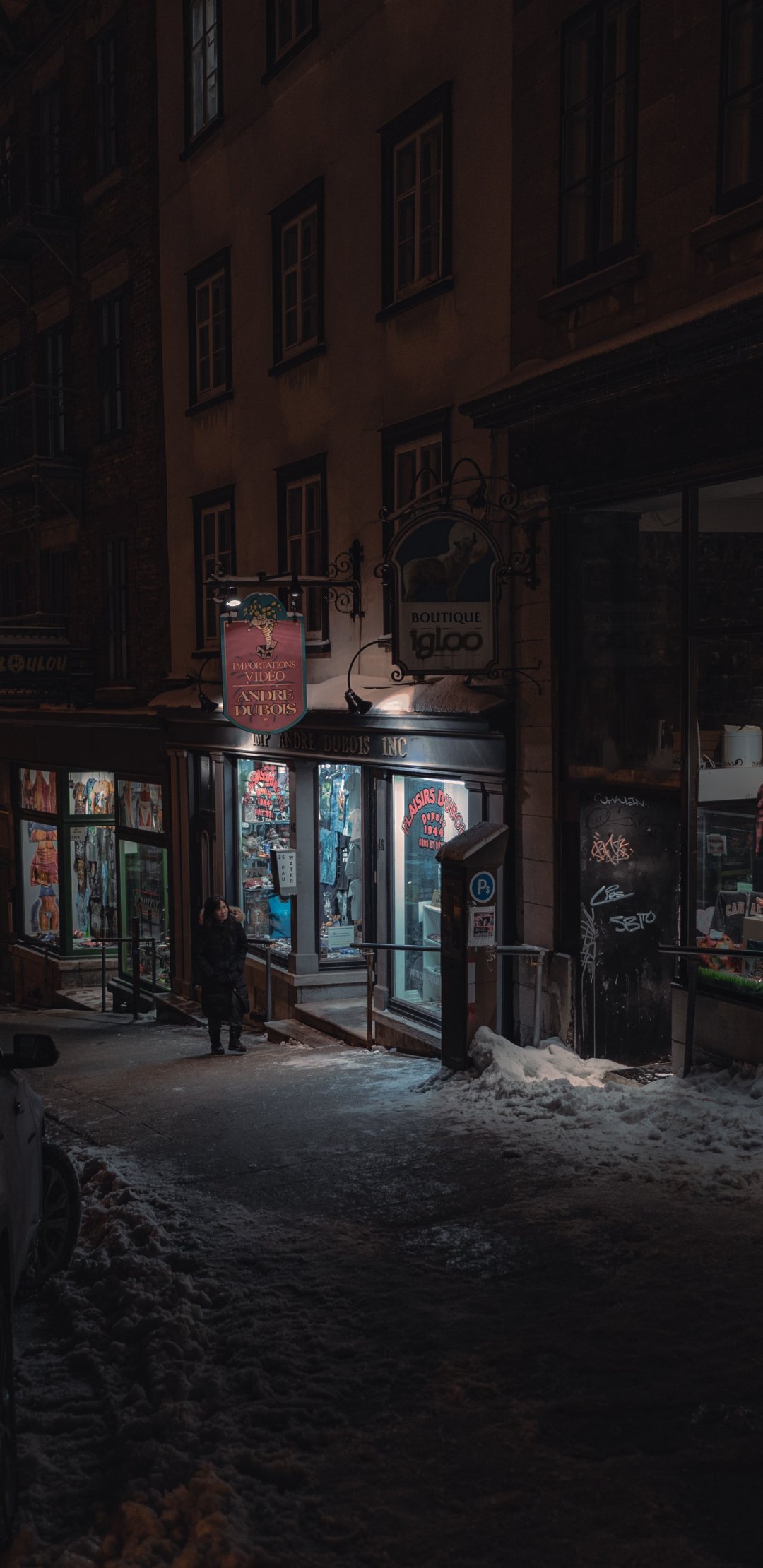 Wallpaper: Quebec, Canada, night street - 1080x2220