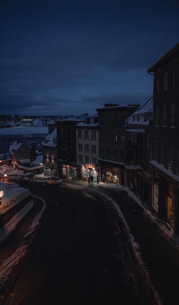 Wallpaper: Quebec, Canada, evening street - 600x1024