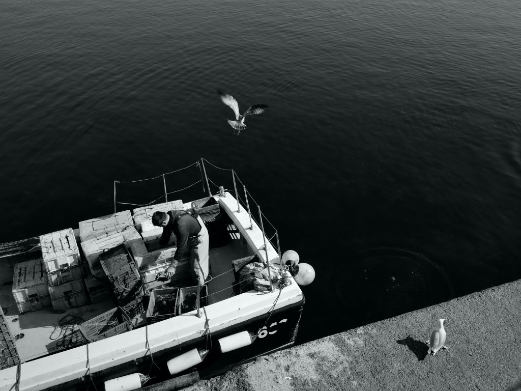 Wallpaper: seagulls, sea, boat - 1024x768