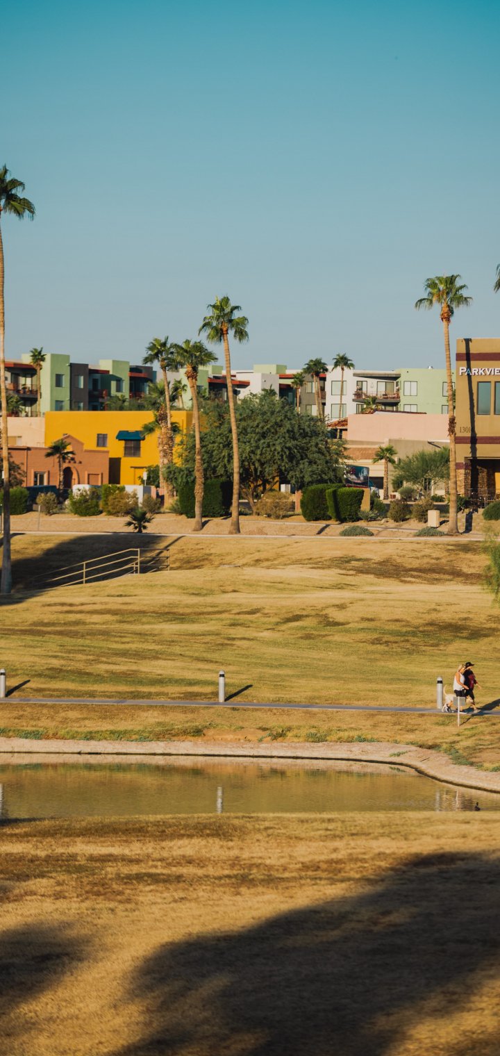 Wallpaper: palm trees, lake, city - 720x1520