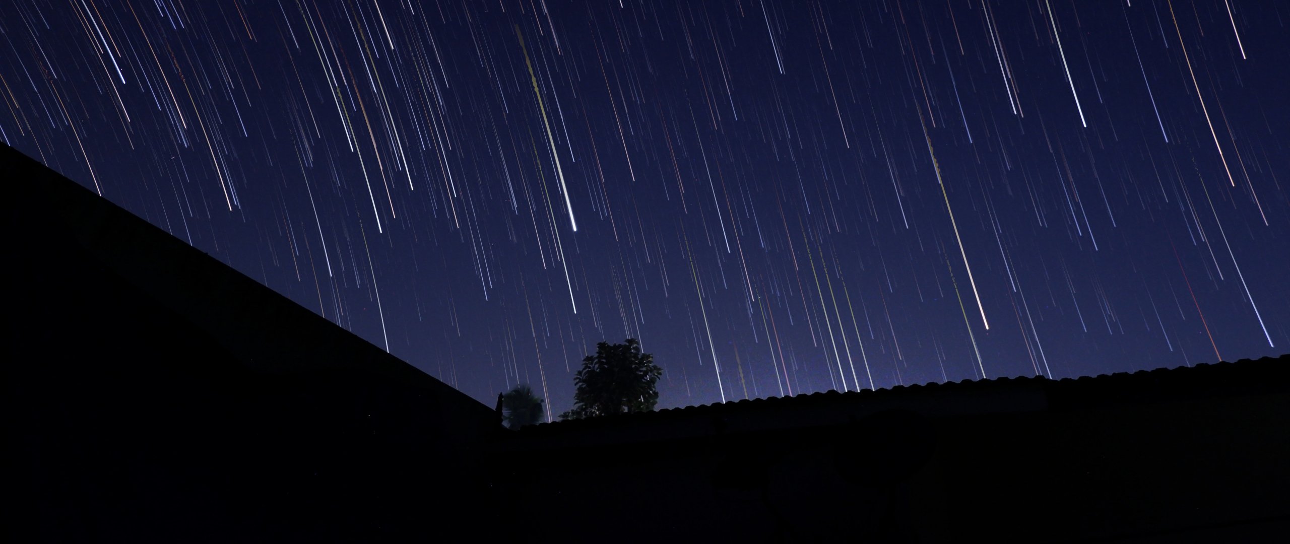 Wallpaper: night, starfall - 2560x1080