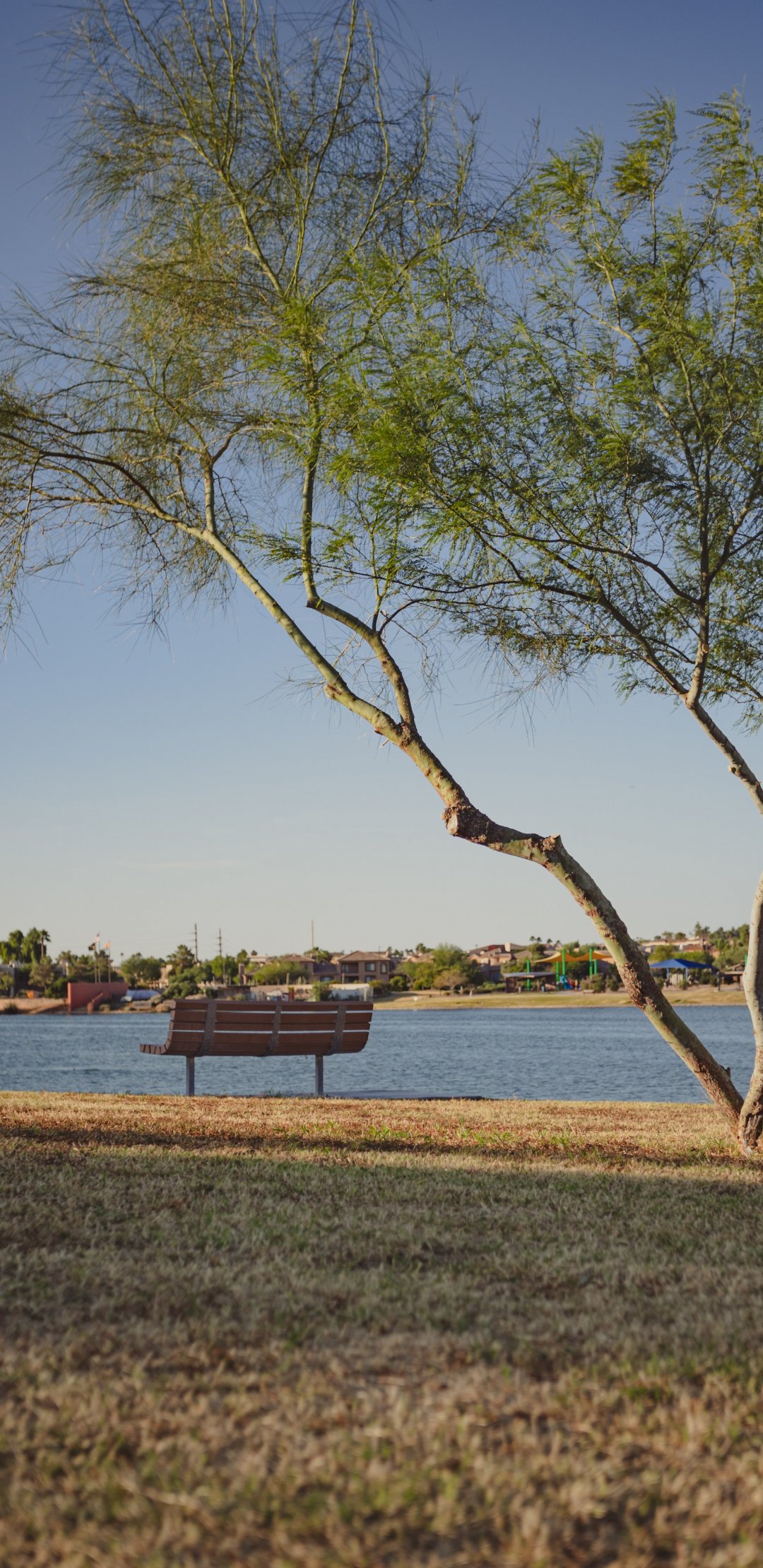 Wallpaper: lake, landscape, city - 1080x2220