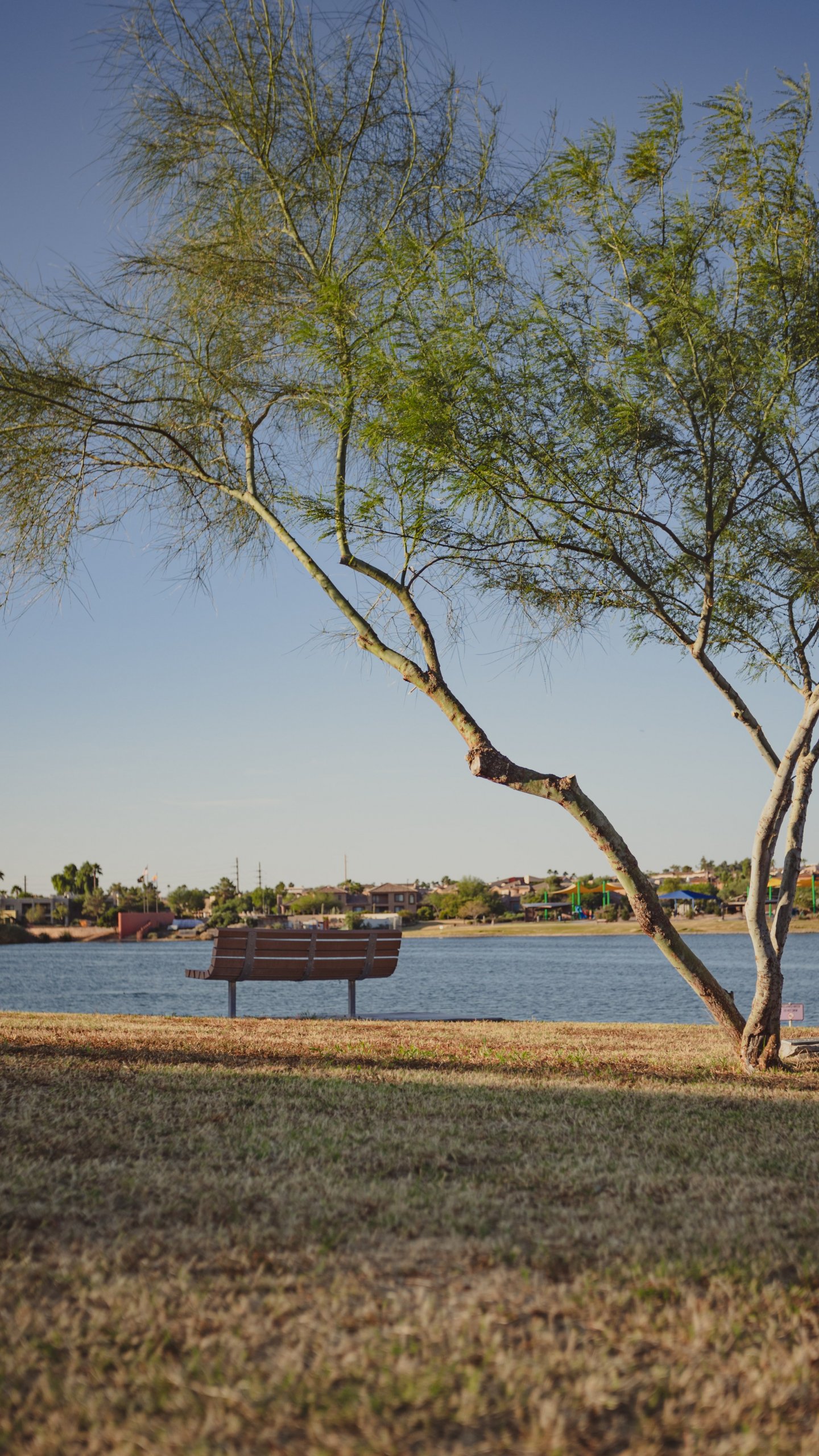 Wallpaper: lake, landscape, city - 1440x2560