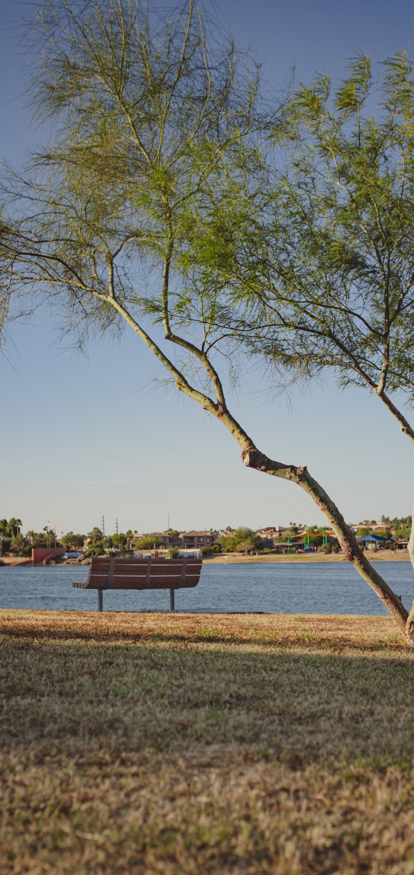 Wallpaper: lake, landscape, city - 1440x3040