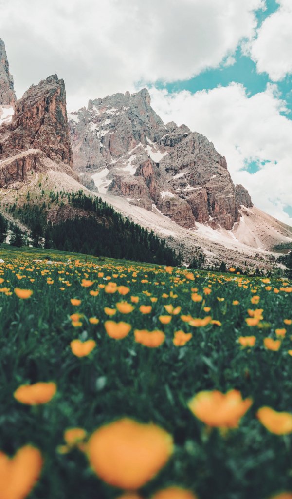 Wallpaper: Italy, mountains, flower field - 600x1024