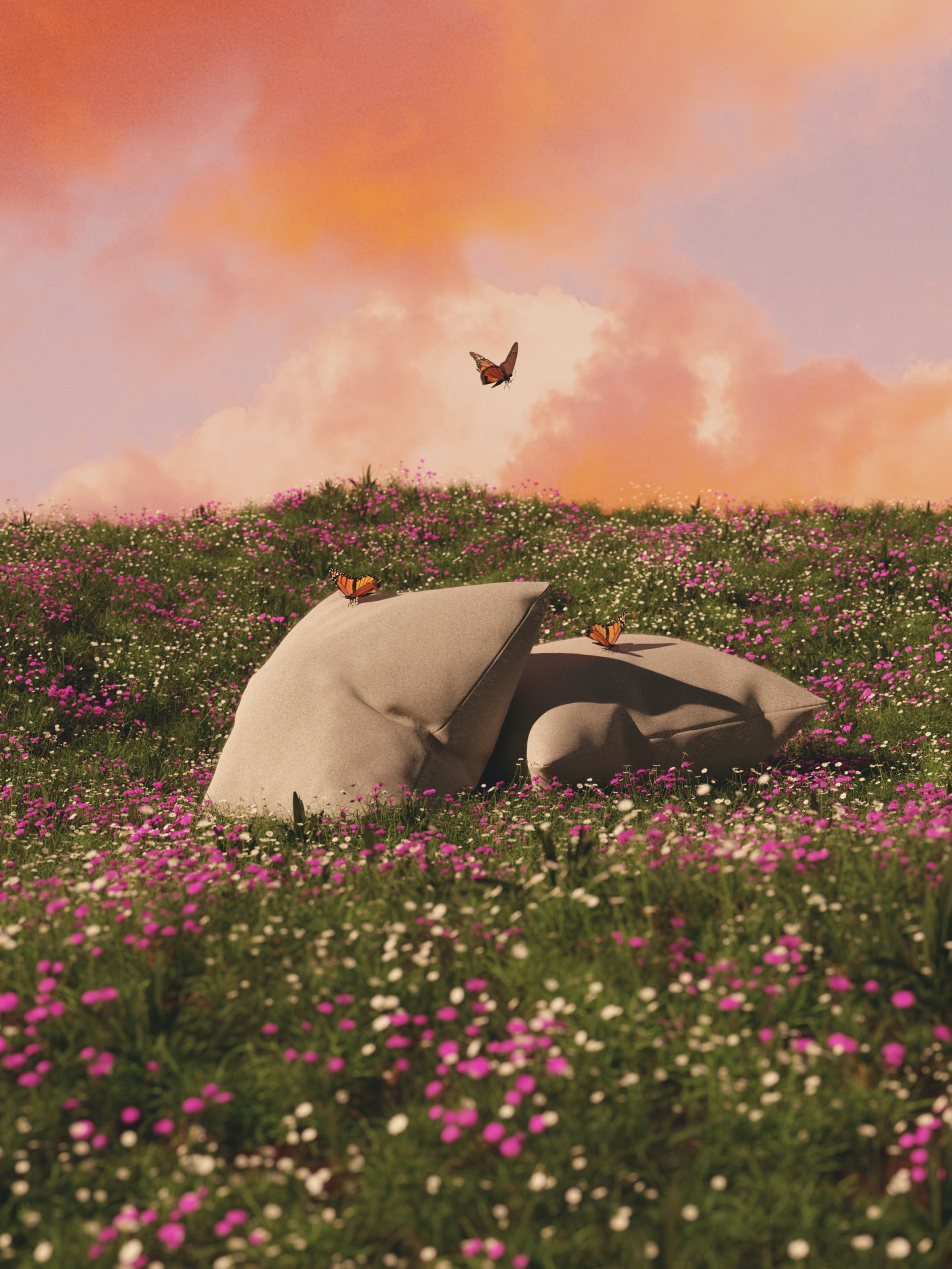 Wallpaper: flower field, pillows - 1668x2224