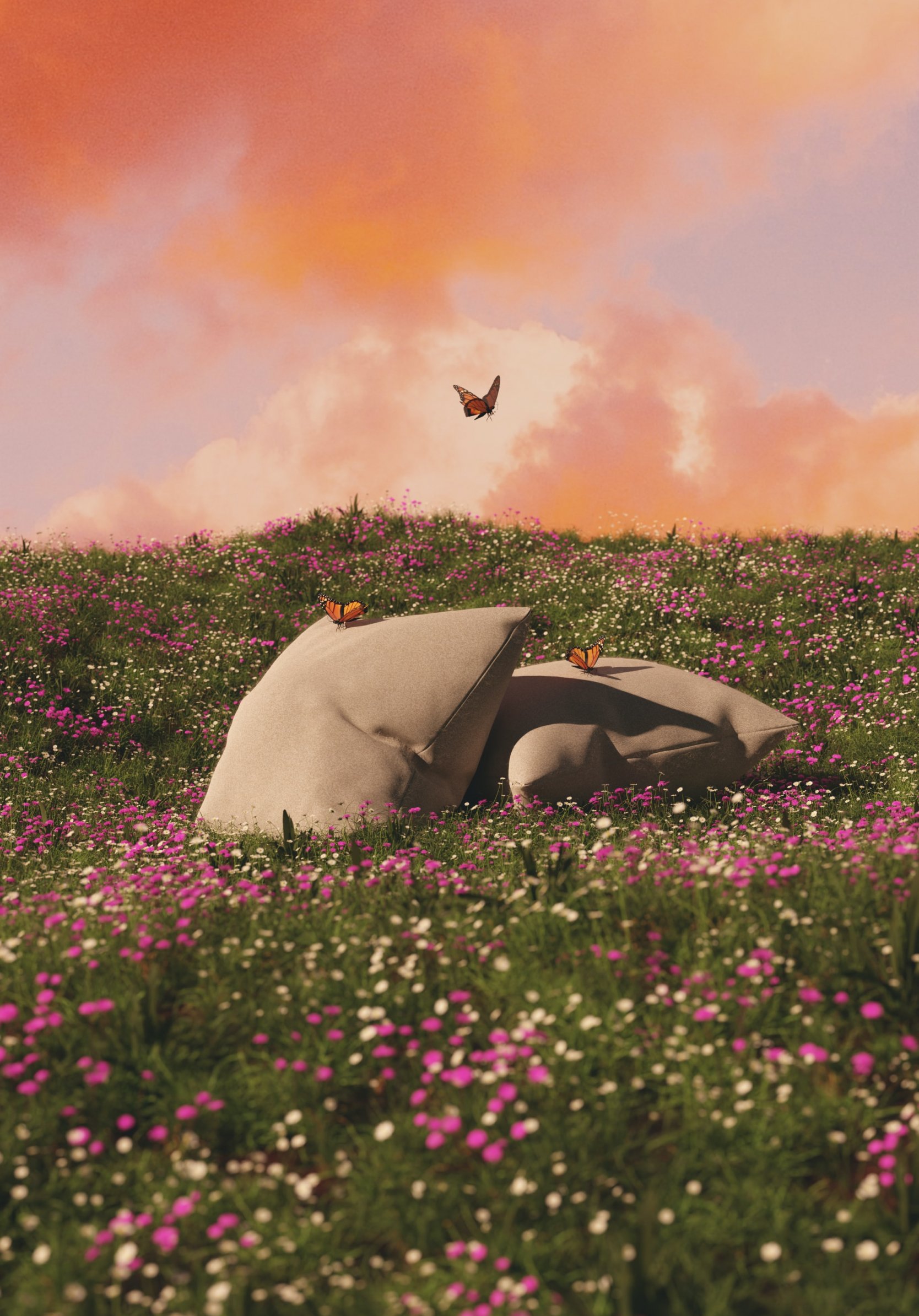 Wallpaper: flower field, pillows - 1668x2388