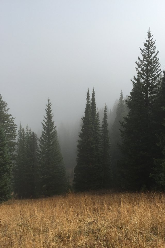 Wallpaper: fog, coniferous trees - 640x960