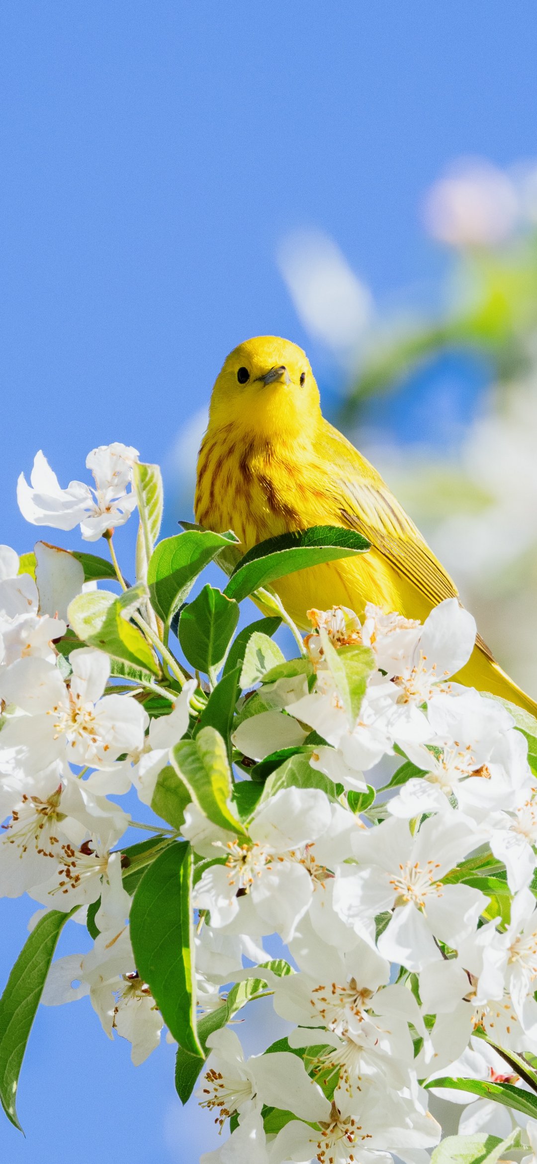 Wallpaper: yellow bird, bloom - 1080x2340