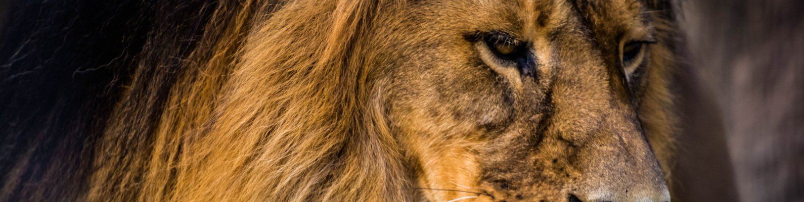 Wallpaper: lion, predator, mane - 1590x400