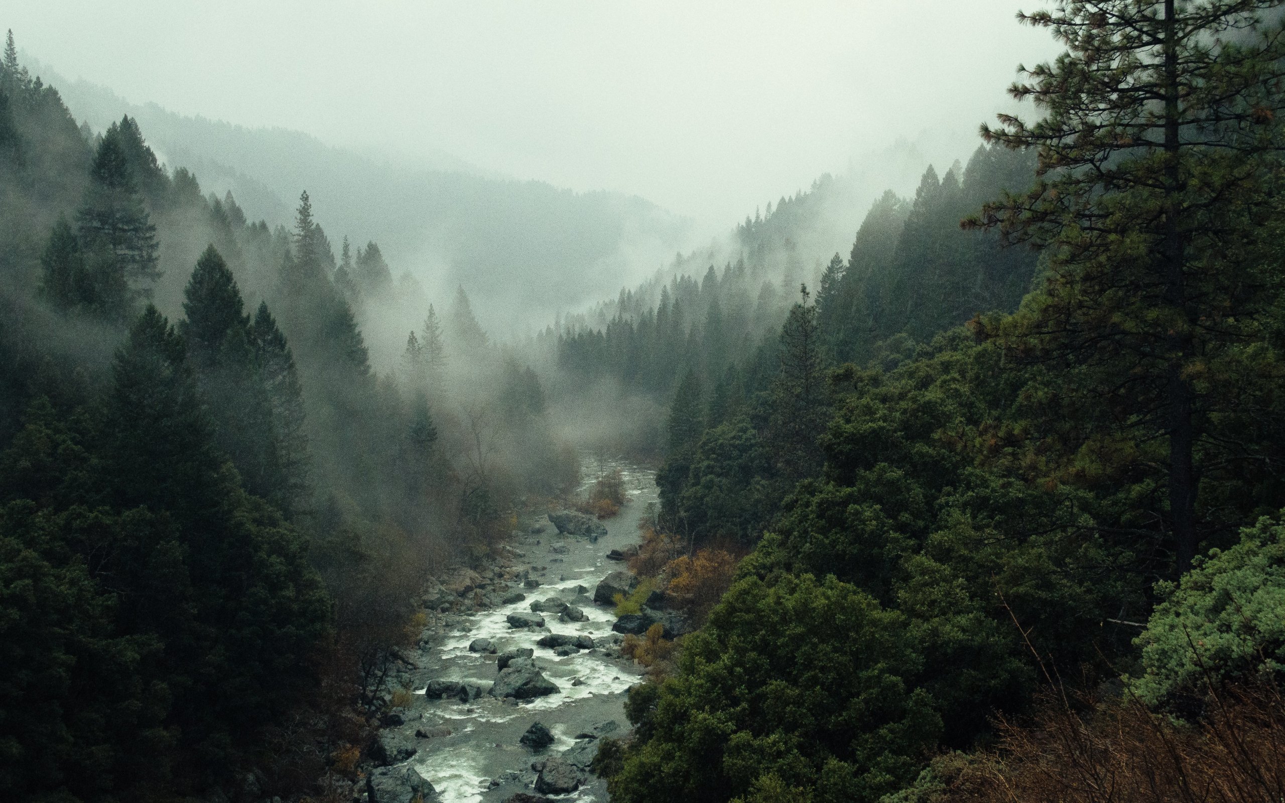 Wallpaper: river, forest, fog - 2560x1600