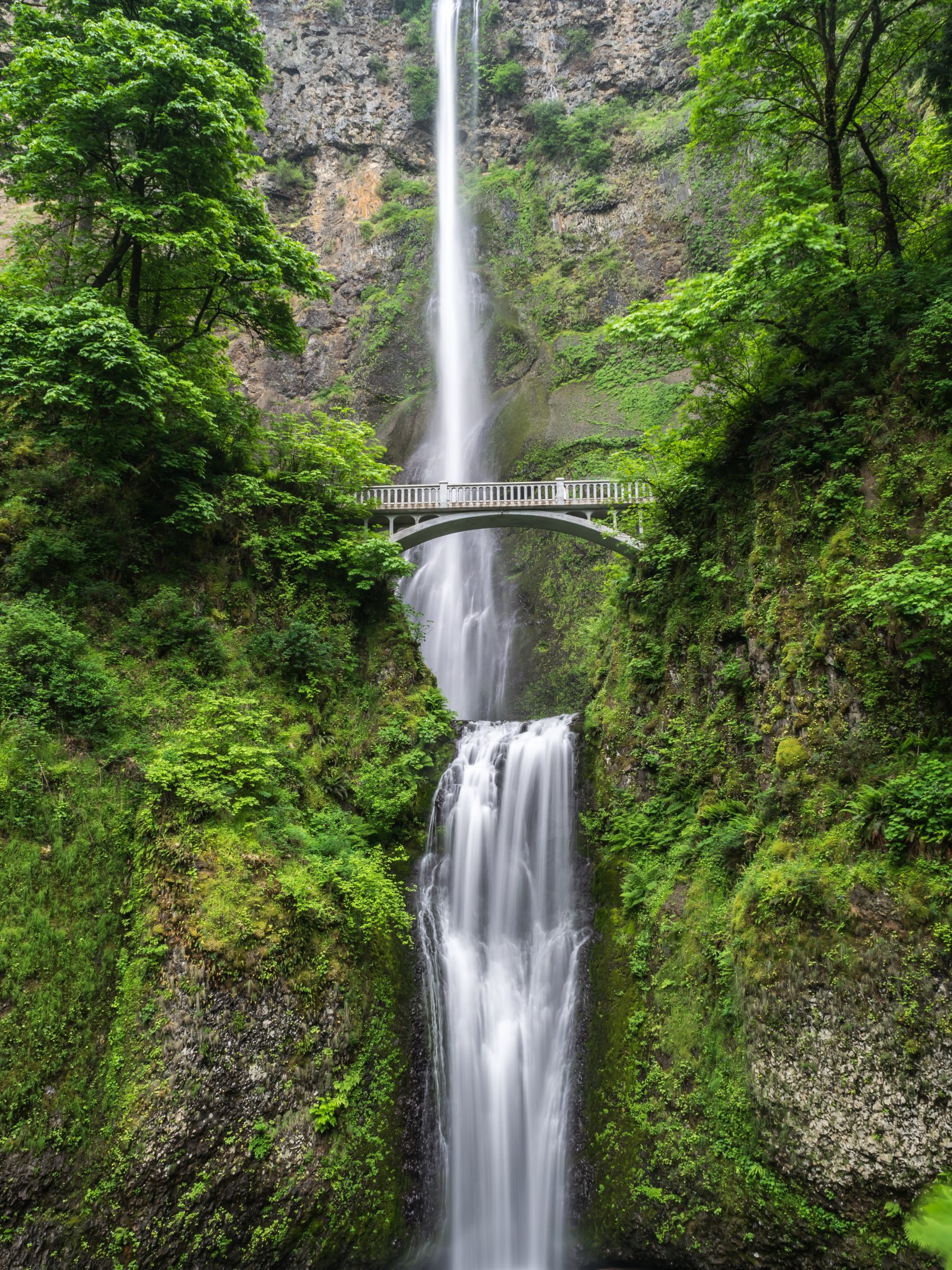 Wallpaper: waterfall, bridge, mountains - 1668x2224
