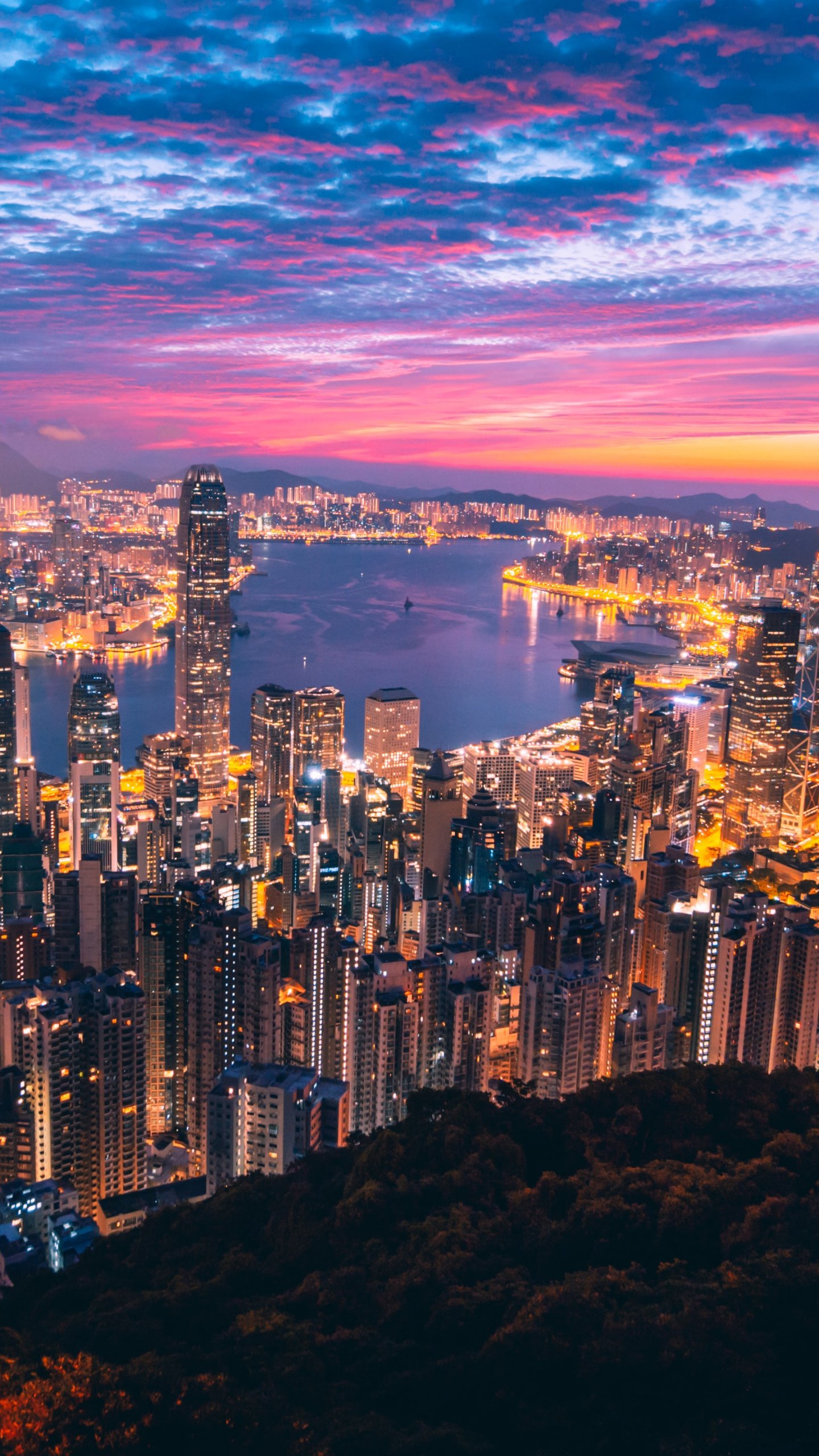 Wallpaper: Hong Kong, city lights - 1440x2560