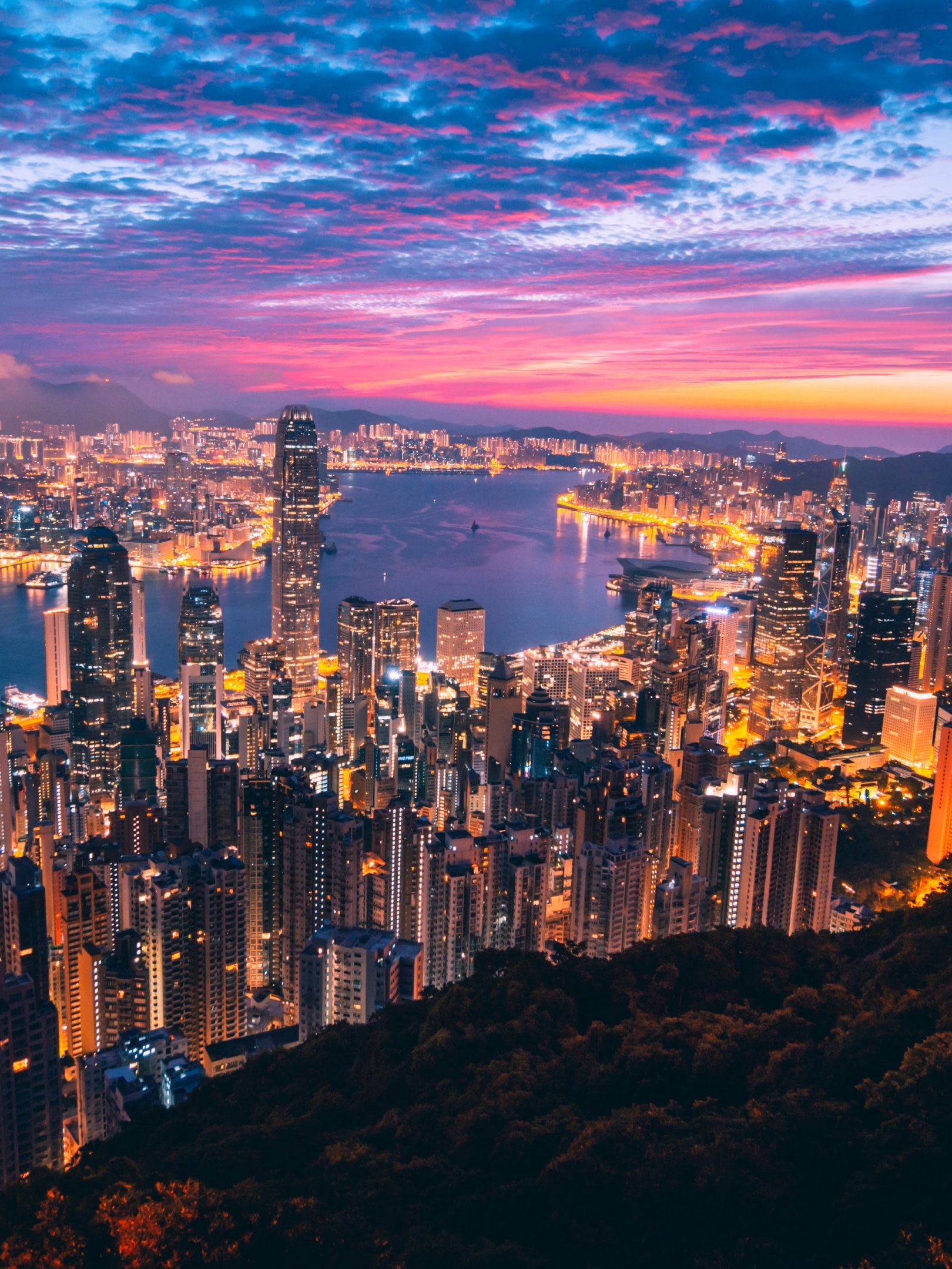 Wallpaper: Hong Kong, city lights - 1620x2160