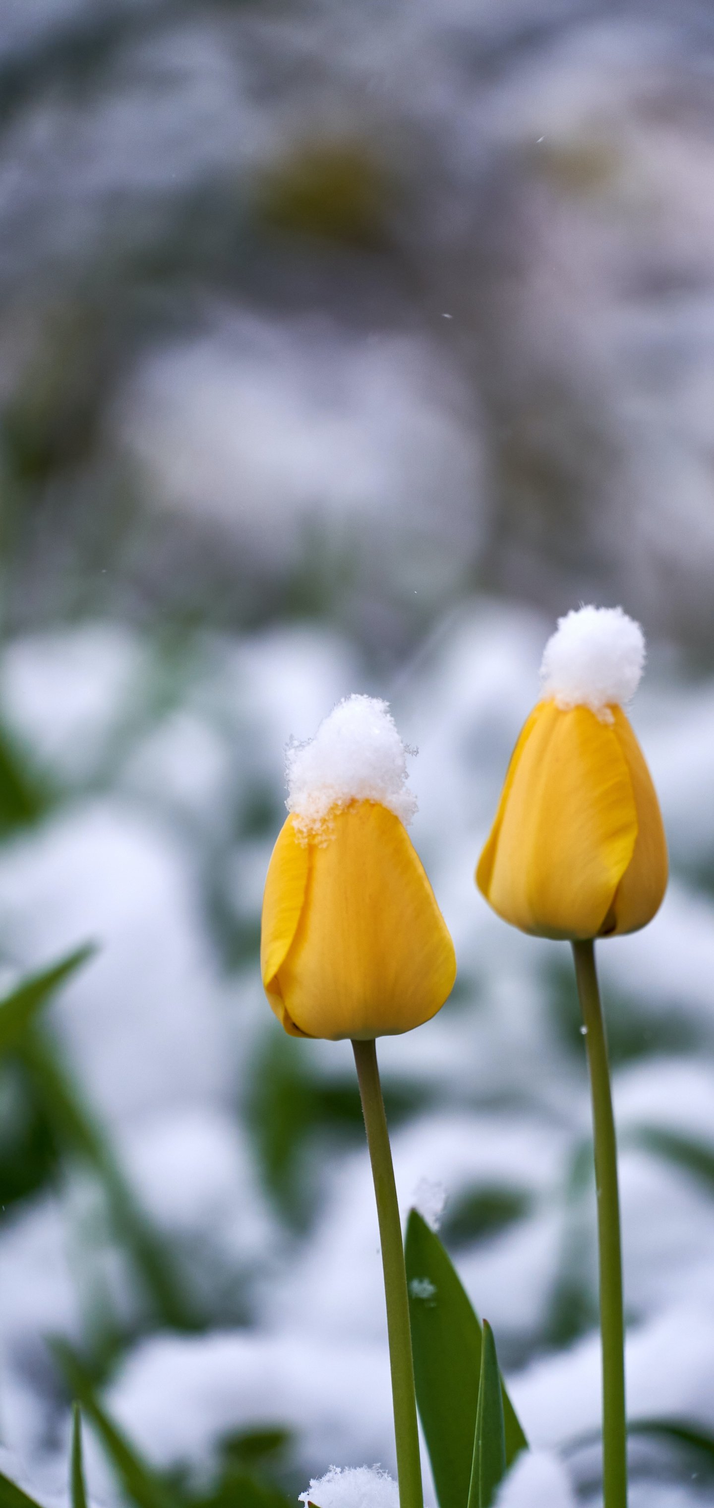 Wallpaper: tulips, snow - 1440x3040