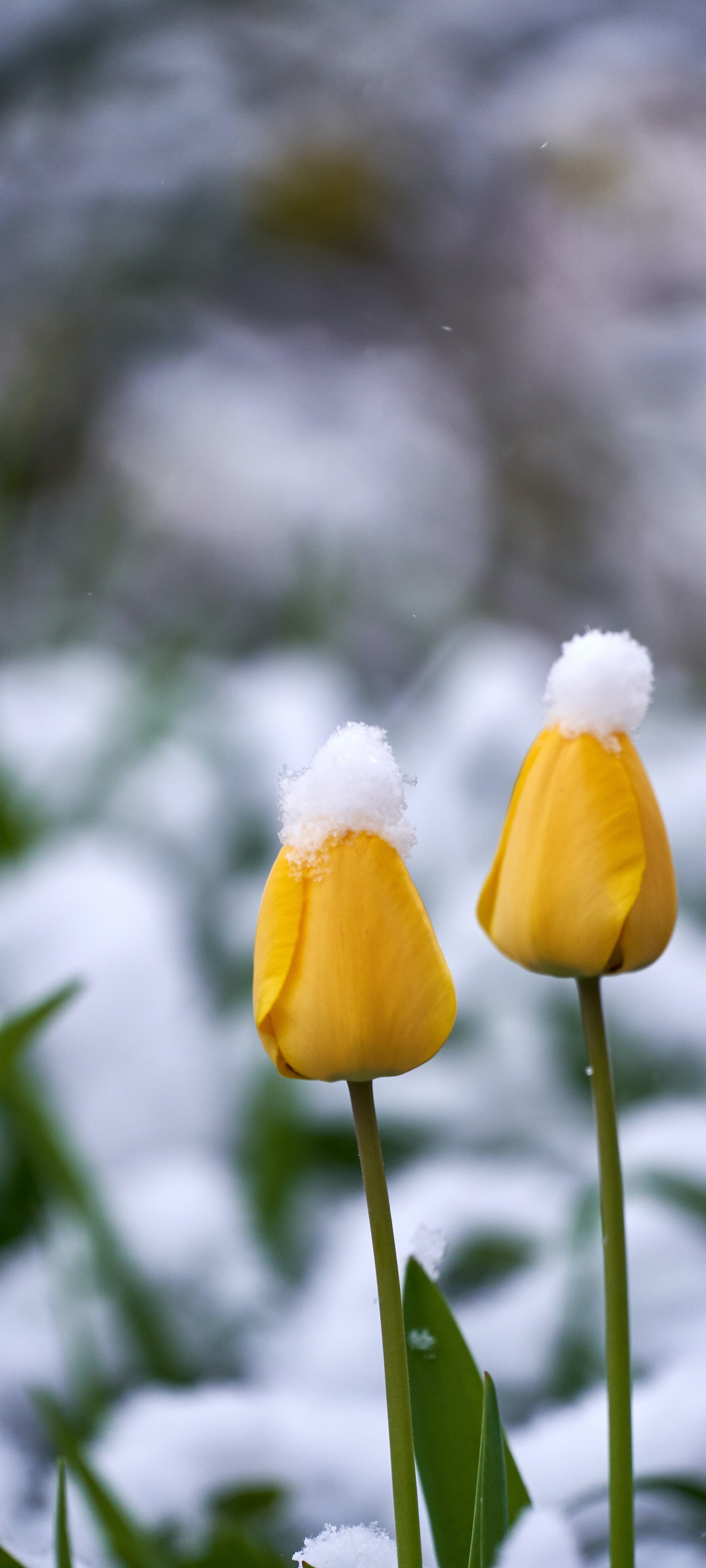 Wallpaper: tulips, snow - 1440x3200