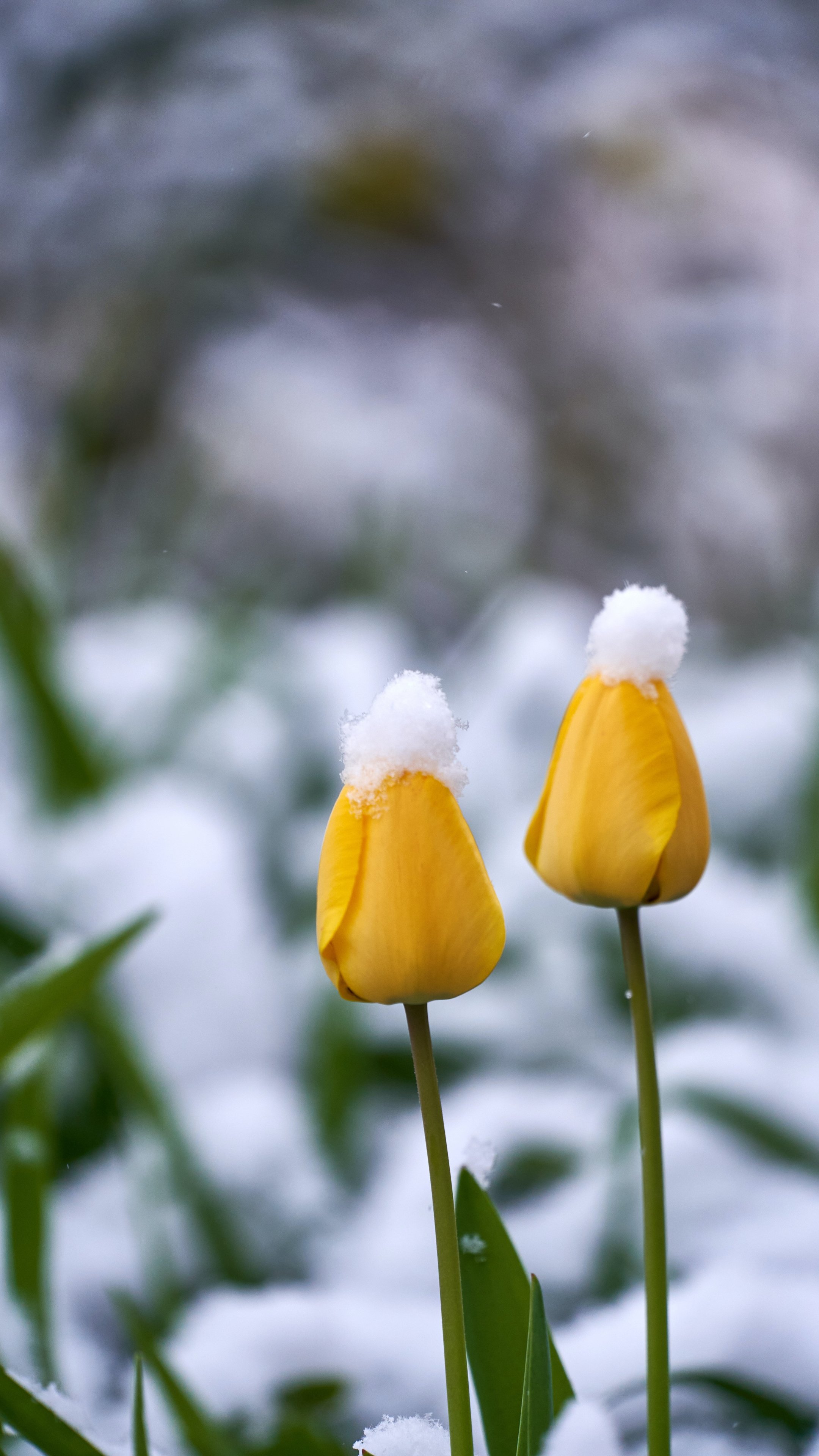 Wallpaper: tulips, snow - 2160x3840